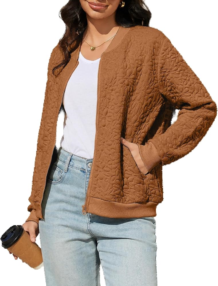 النمط الكاجوال: هذا هو سترة بومبر نسائية بسحاب، وسترة نسائية، وسترات بومبر للنساء 2026، وسترة قصيرة. مع ياقة بيسبول كلاسيكية وسترة بومبر قصيرة، تمزج هذه القطعة بين التفاصيل الرياضية مع لمسة من نمط الملابس المريحة. يتميز هذا الجاكيت بنمط كلاسيكي متين، مما يضيف لمسة عصرية إلى خزانة ملابسك في الخريف والشتاء. التصميم الخالد يجعل من السهل ارتداؤه مع أي ملابس، من الملابس الكاجوال إلى الملابس الأنيقة.