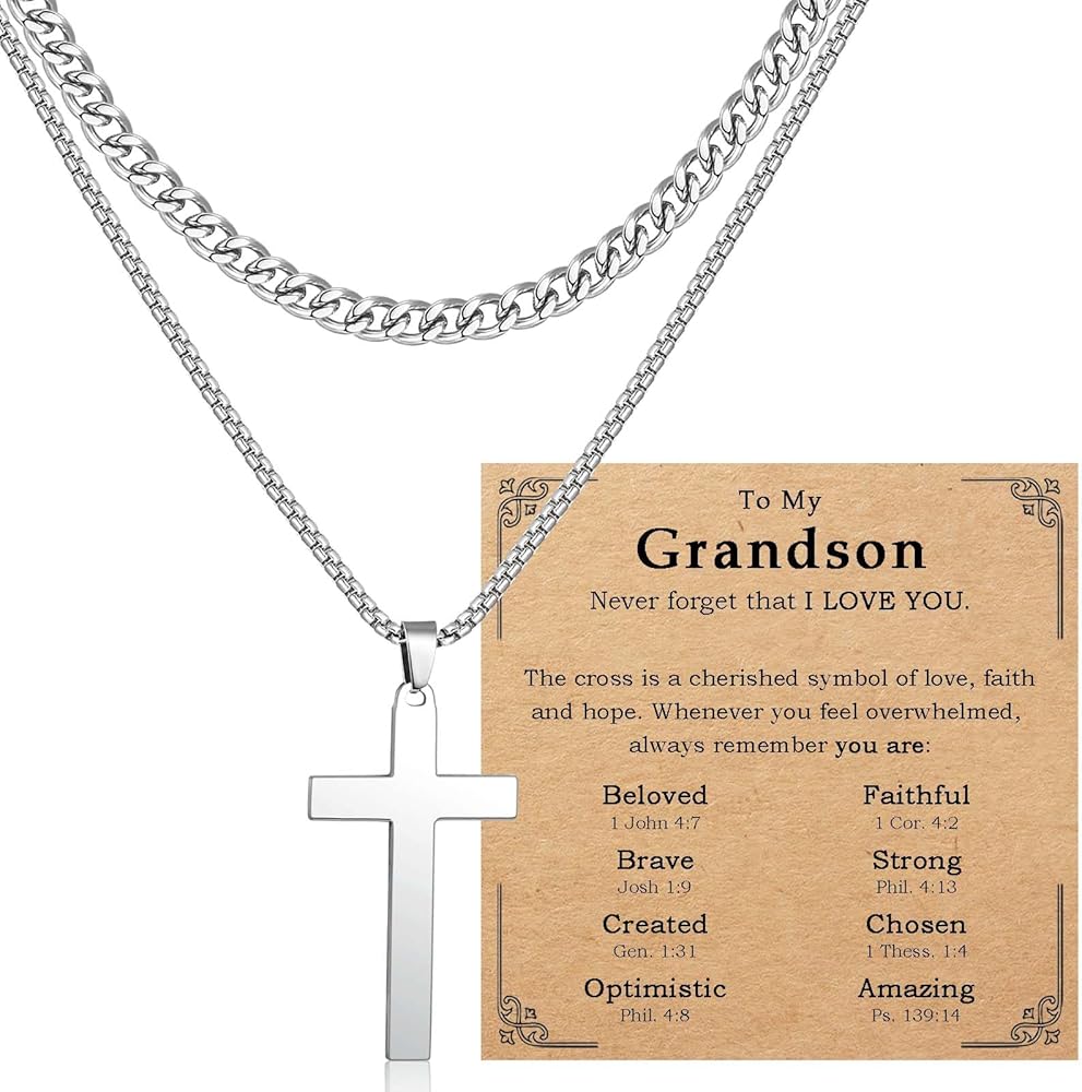 قلادة متقاطعة: قلادة متقاطعة للأولاد والرجال هي رمز عزيز للحب والإيمان والأمل. تصميم متعدد الطبقات، أسلوب بسيط ولكن شخصي، أفضل الأفكار كهدية مسيحية ودينية للأولاد والرجال المراهقين. رائعة كهدايا عيد الفصح وحشو سلة عيد الفصح.