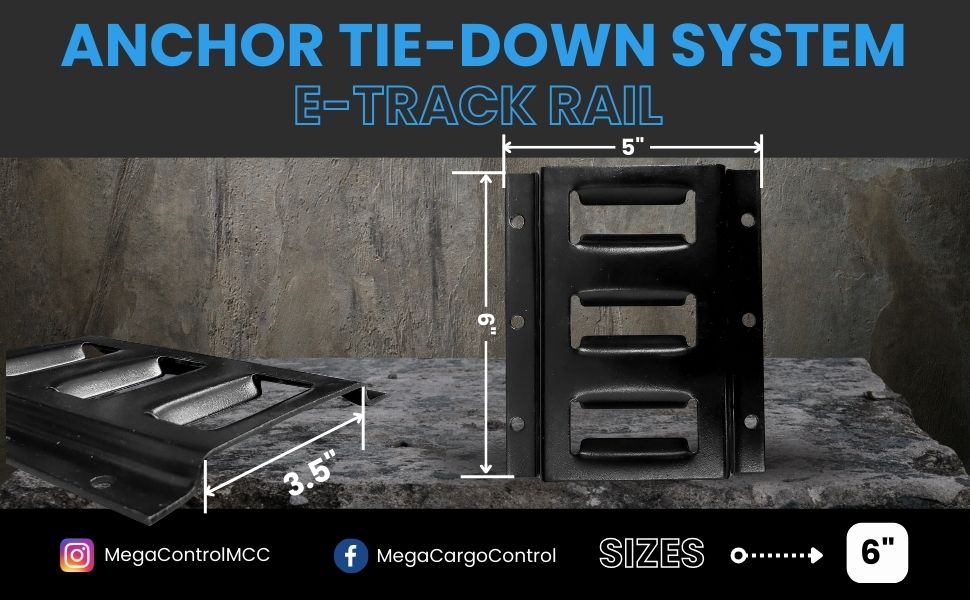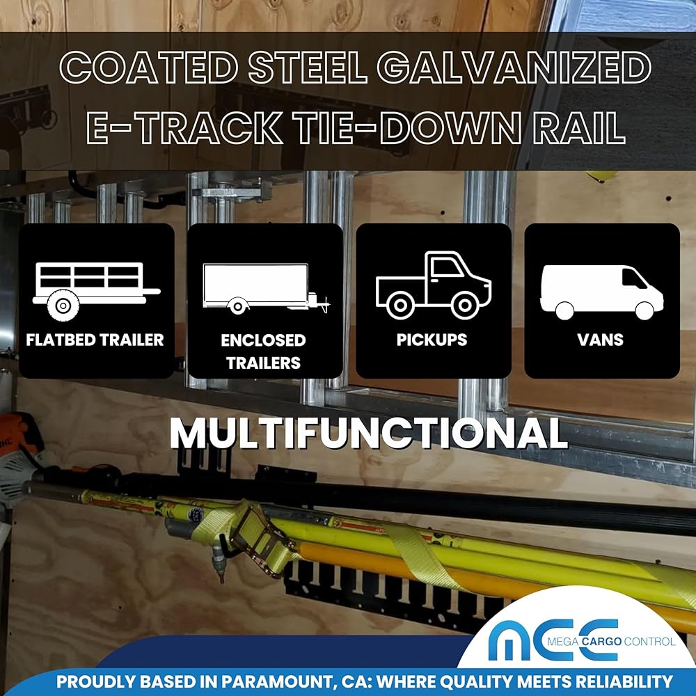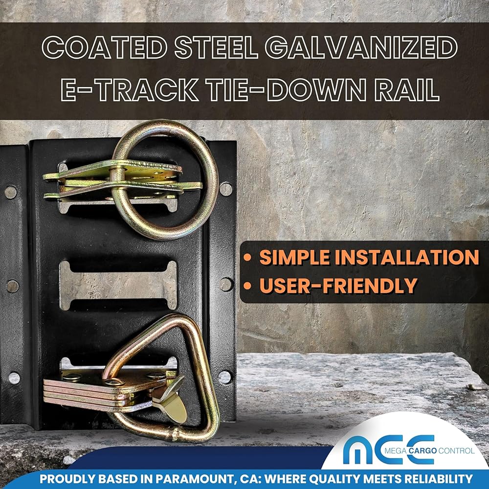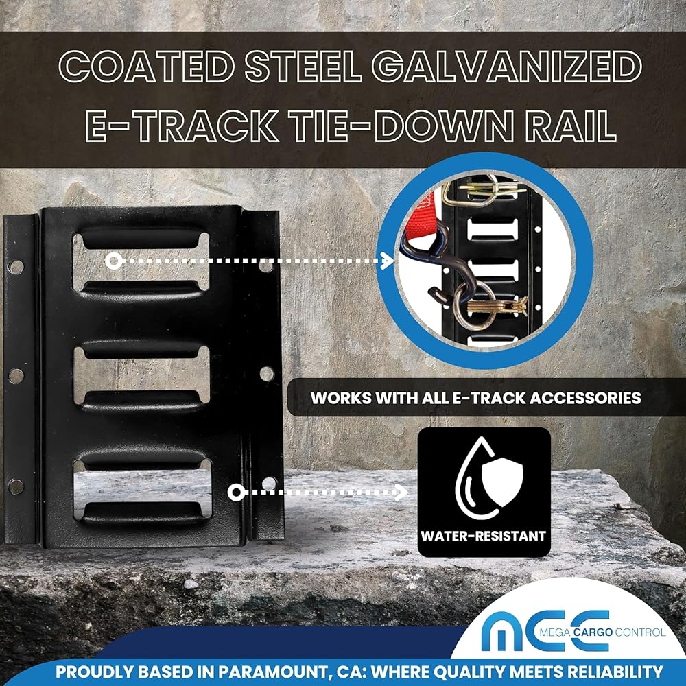 التحكم في الشحنات الضخمة - طقم السكك الحديدية E Track Tie Down مقاس 6 بوصات (4 عبوات) للمرائب، والشاحنات الصغيرة، والمقطورات، وأربطة ربط الدراجات النارية، وتركيبات ATV - قضبان ETrack ذات طلاء مسحوق أسود، والبضائع الآمنة والأحمال الثقيلة