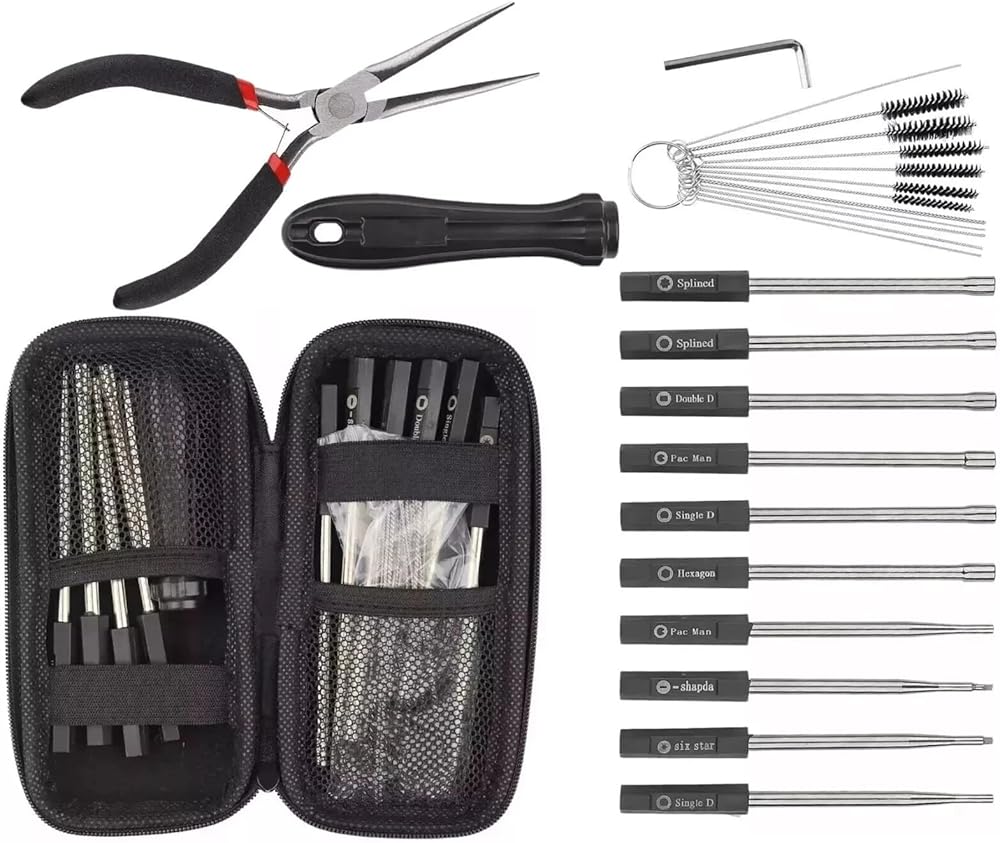 - Cleaning kits include: ● 1X Long Nose plier ● 6pcs cleaning needle, 6pcs cleaning brush ● 1pc hex wrench