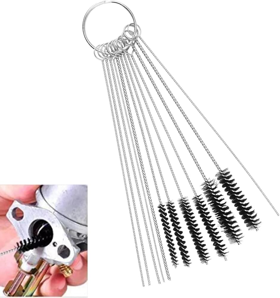 - Carburetor adjustment tool size: ●Big head tools: handle length 77.5mm, metal pole length 75mm, head diameter 5mm ●Small head tools: handle length 77.5mm, metal pole length 77mm Carburetor cleaning kit size: ●Overall length: 4-inch ●Brush diameters: approximately 3mm, 4mm, 4.5mm, 5mm, 6mm, 7mm