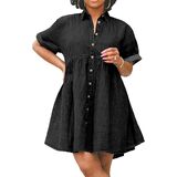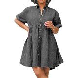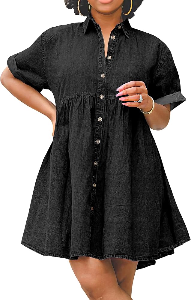 TheyLook Womens Denim Babydoll Dresses Button Down Tiered Jean Dress