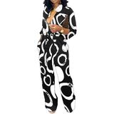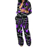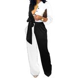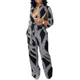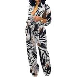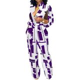 التصميم: رقبة على شكل حرف V، سروال كامل الطول، خصر مطاطي، طباعة عصرية، أزرار زخرفية أمامية، أكمام طويلة، بدلة طويلة مع جيب، رومبر ملفوف بحزام.
