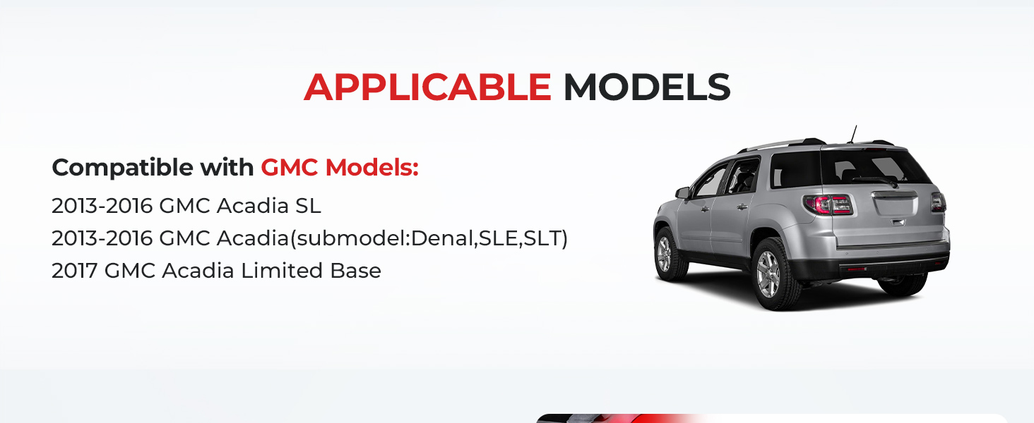 【ملاءمة السيارة - أكاديا】 متوافق مع جي إم سي أكاديا 2013، 2014، 2015، 2016 (جميع الطرازات: دينالي، SL، SLE، SLT). متوافق مع سيارة جي إم سي أكاديا المحدودة لعام 2017 ("المحدود" هو طراز الجسم الأقدم/الأكبر).