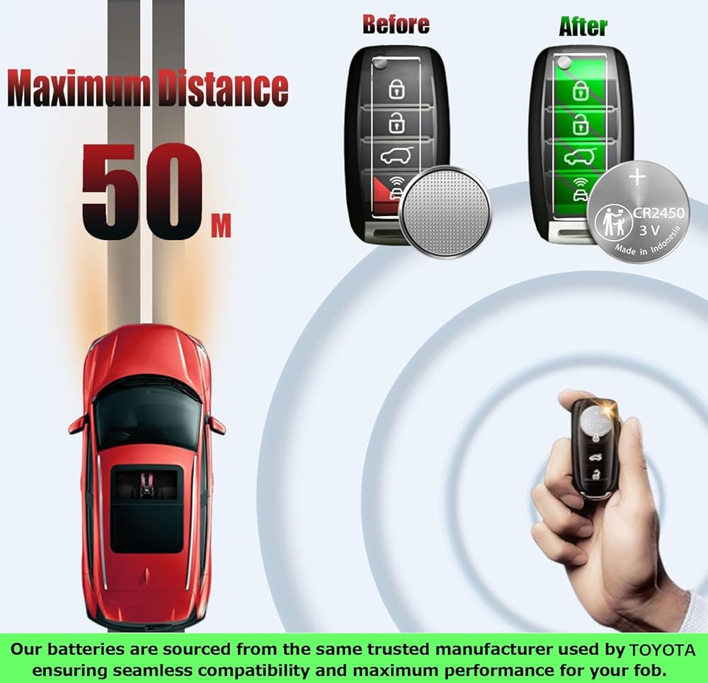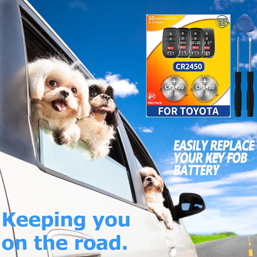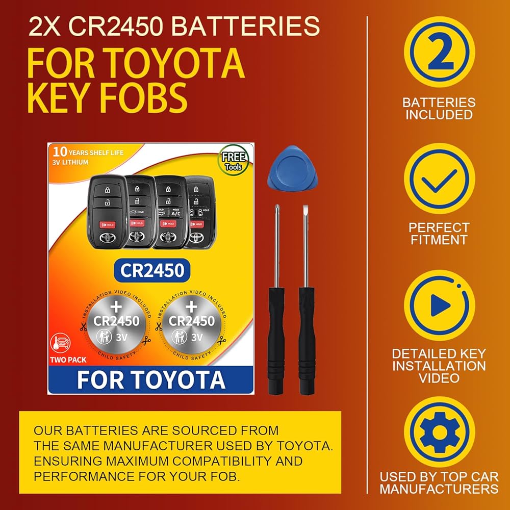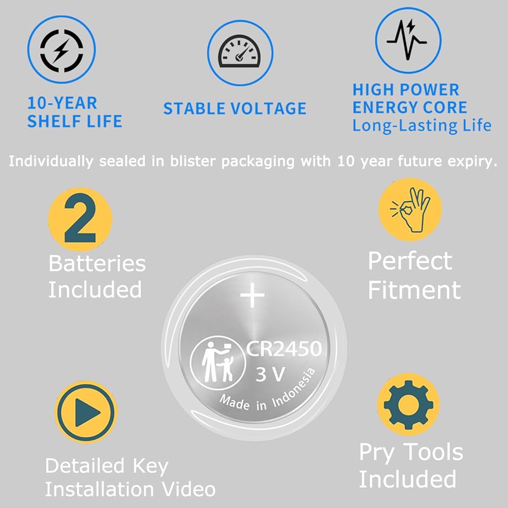 Pack Including: TWO (2) PACK Original CR2450 key fob battery + Opening/Pry Tools + Installation Video Card ( remote fob not included) , Original Battery as Provided by Same Manufacturer .