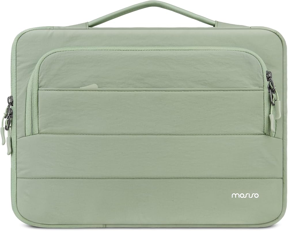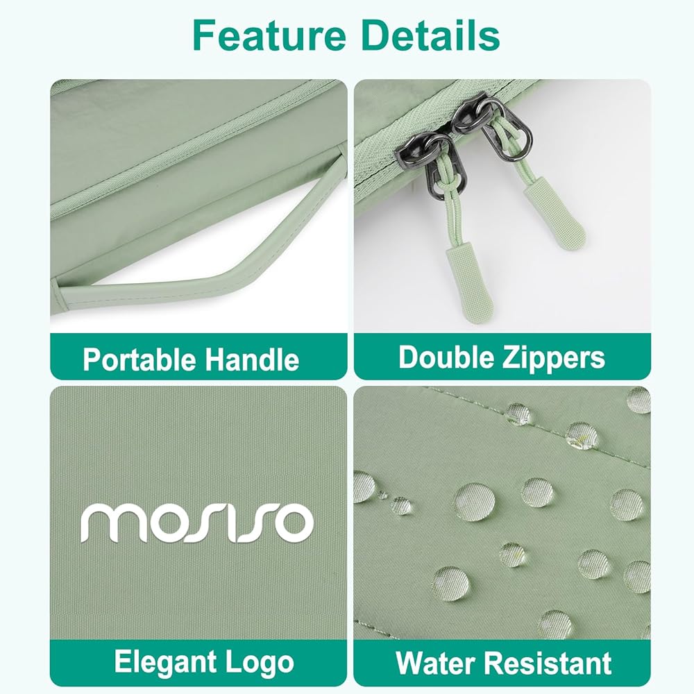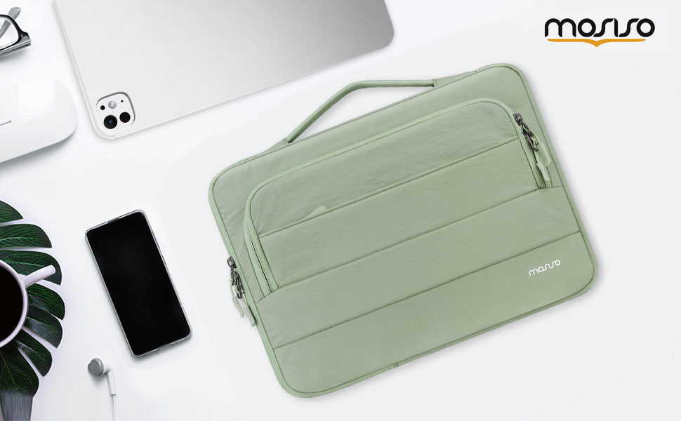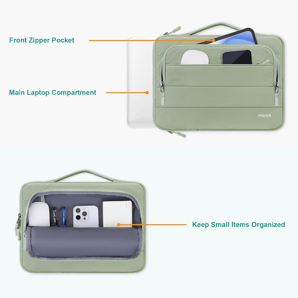 حقيبة حمل ذات حافة داخلية معززة وواقية بزاوية 360 درجة تحمي الكمبيوتر المحمول الخاص بك من أي سقوط عرضي. تصميم المقبض القابل للتمدد يجعله يحمل الكمبيوتر المحمول الخاص بك بشكل مريح، ويمكنك أيضًا إزالة المقبض. تصميم بسحاب جانبي مفتوح، لتجنب السقوط العرضي لجهاز الكمبيوتر المحمول الخاص بك أثناء الحمل. يوفر الجيبان الأماميان المزودان بسحاب مساحة كافية للاحتفاظ بالماوس وسماعات الأذن والأقلام ودفاتر الملاحظات، مما يوفر المزيد من الراحة.