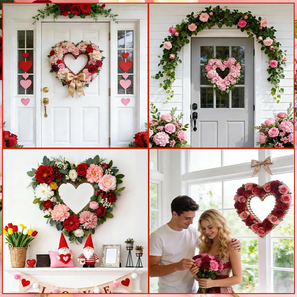 • Package Included: You will receive 2 pack heart wreath frame measuring about 14 inch/35.5 cm in diameter(measured from one outer ring to the other outer ring). The tighter gaps provides tight wrapping and neat appearance. Suitable size and quantity can meet your diverse daily demand for making door wreath and using floral arrangements to make various festival wreath decorations