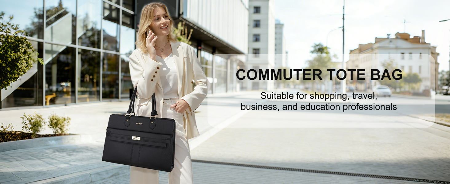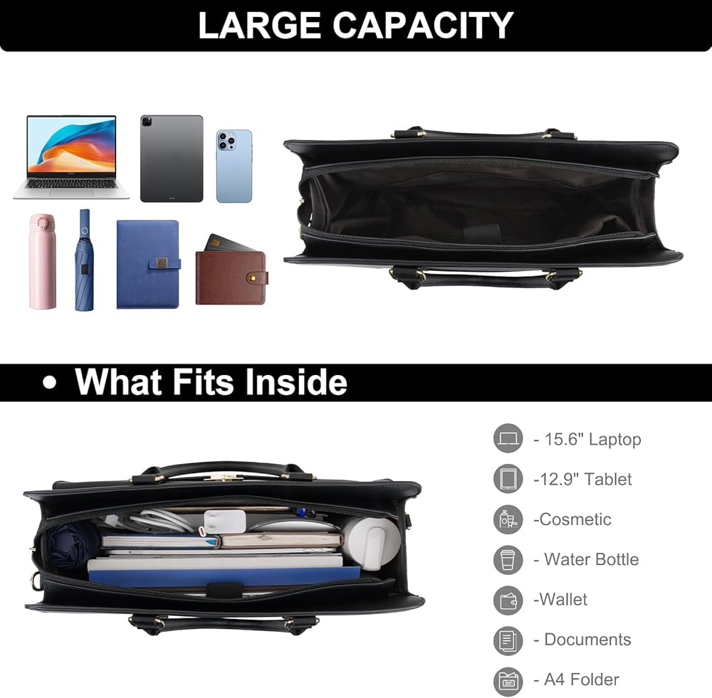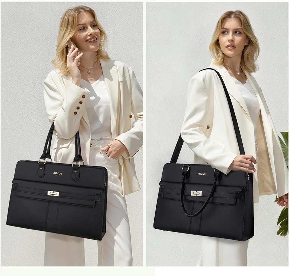 حقيبة كمبيوتر محمول للنساء من MOSISO، حقائب كمبيوتر محمول من جلد البولي يوريثان مقاومة للماء مقاس 15.6 بوصة، حقيبة حمل مع حجرة كمبيوتر محمول للأعمال، حقائب كتف ذات سعة كبيرة بمقبض علوي وحقيبة يد عمل المعلم، أسود