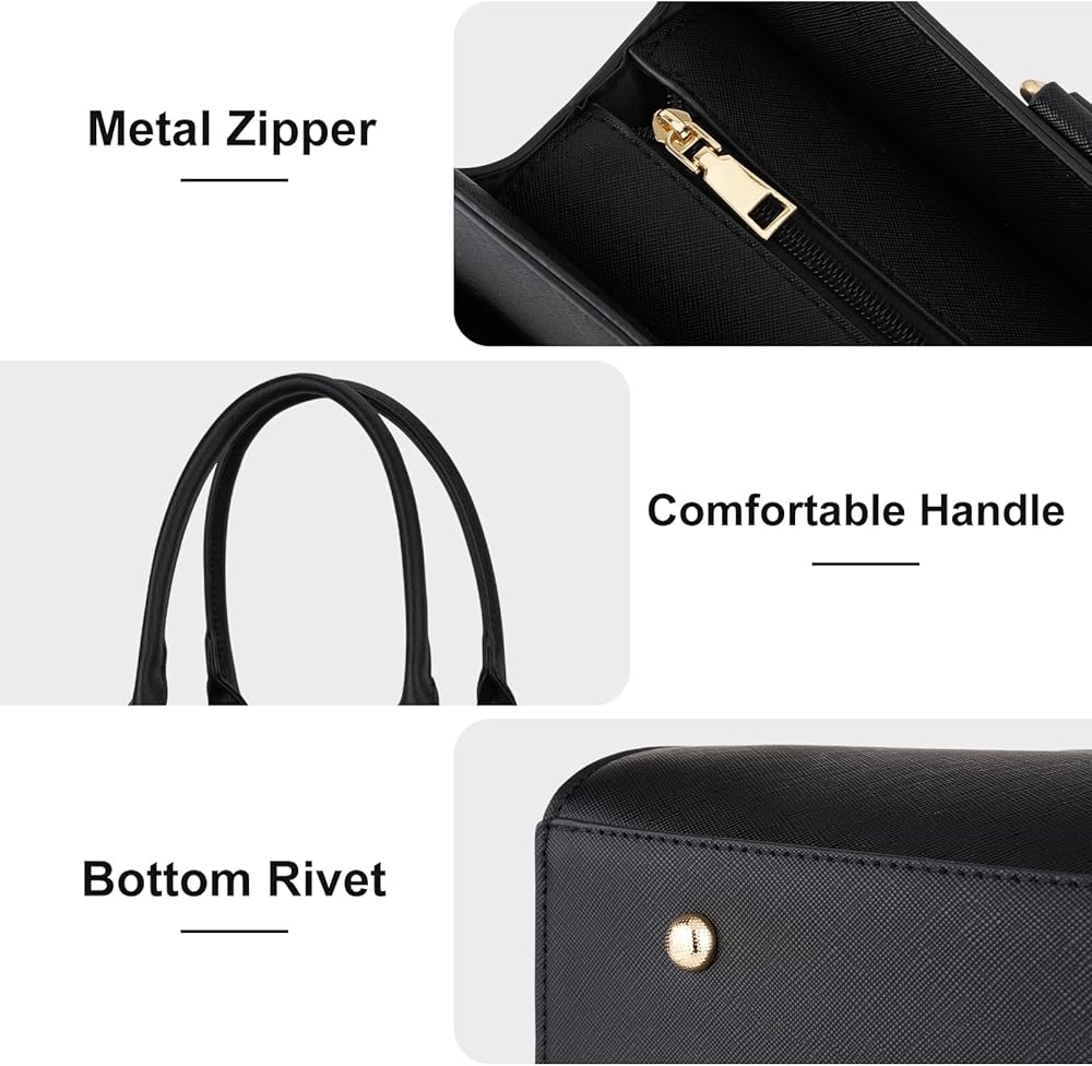 حقيبة يد علوية احترافية ومفيدة للنساء. مصنوع من مادة جلد البولي يوريثان المقاومة للماء، أنيق وعصري. حزام كتف مبطن قابل للإزالة والتعديل يتراوح من 32.68 إلى 54.53 بوصة كحد أقصى. حزام كتف قابل للإزالة يسمح لك بحملها كحقيبة كمبيوتر محمول، أو حقيبة كتف للكمبيوتر المحمول، أو حقيبة كروس، أو حقيبة بمقبض علوي، أو حقيبة كتف أو حقيبة حمل.