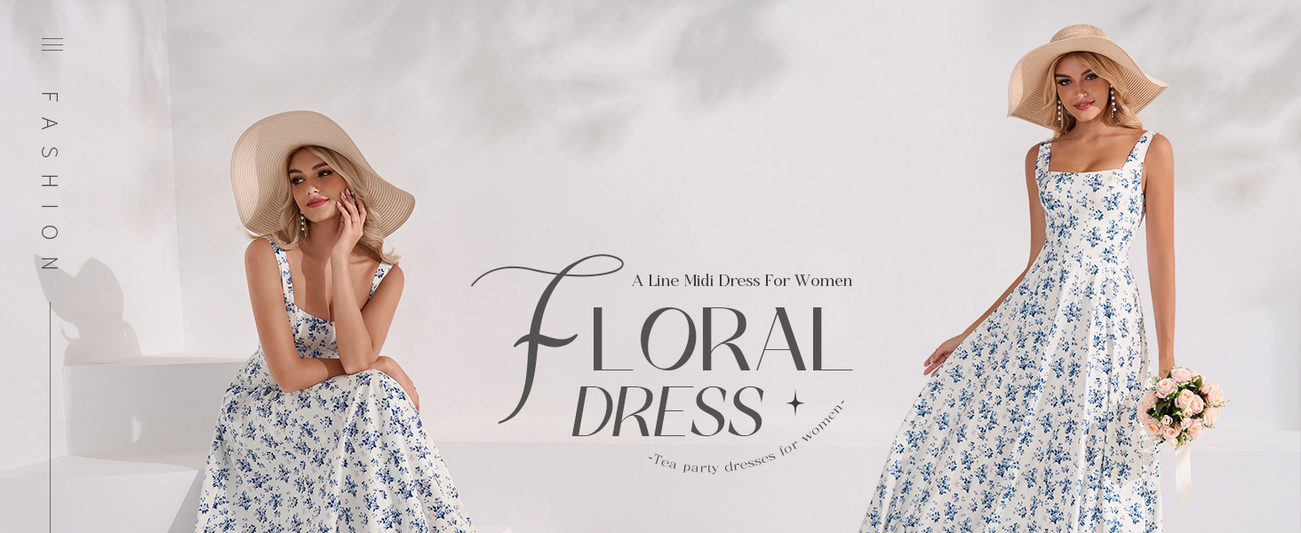 • خيار اللون: فساتين متوسطة الطول للسيدات متوفرة بأنماط زهور مختلفة، مما يوفر لك خيارات لا حصر لها للتعبير عن شخصيتك، فستان الشاطئ الأبيض، فستان الزهور الأزرق، فستان الشمس الوردي، فستان ضيوف الزفاف الأزرق