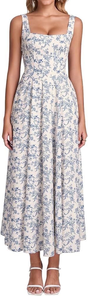 • السمات: فساتين الشمس الزهرية للنساء، فستان ضيوف حفل زفاف، رقبة مربعة، فستان متوسط الطول، حاشية مكشكشة وطباعة زهور تضيف المزيد من المرح إلى الفستان الطويل، أشرطة سباغيتي قابلة للتعديل ورباط من الخلف لتناسب جميع أنواع الجسم