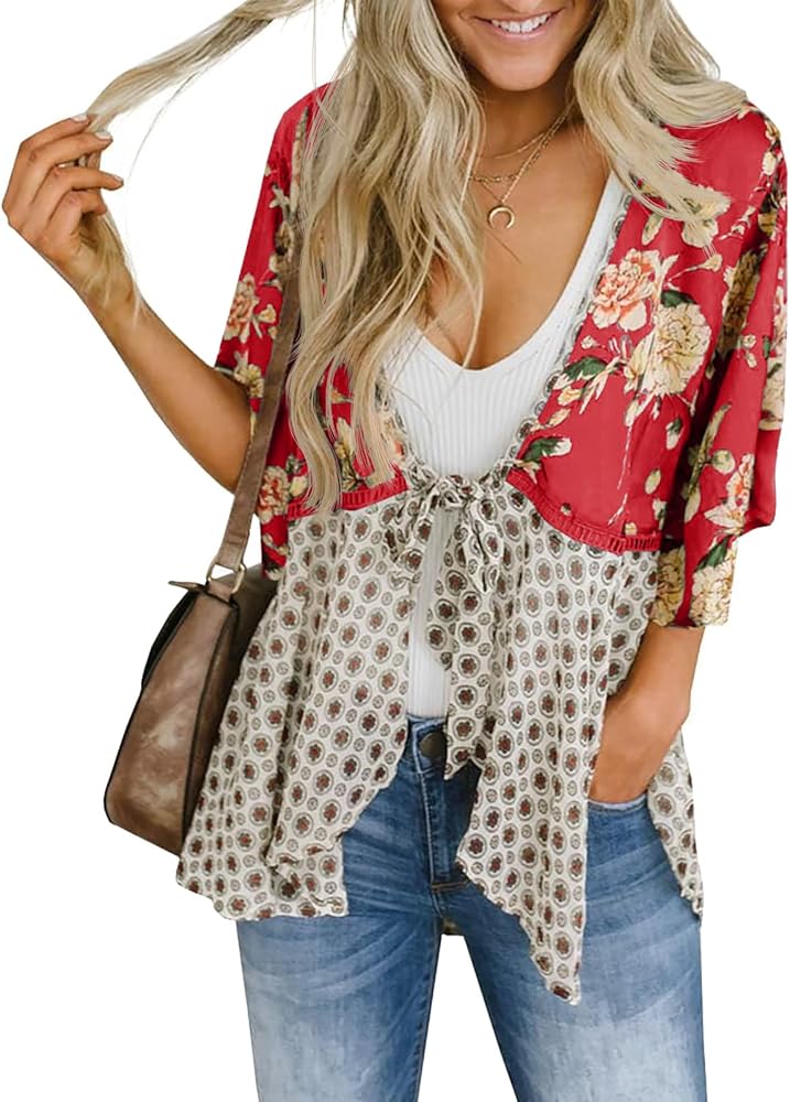 • المطابقة: سترات كيمونو للسيدات متعددة الاستخدامات. أكمام قصيرة بنمط الكيمونو وتصميم مفتوح من الأمام تجعل هذه السترة مثالية للارتداء فوق قمصان بدون أكمام أو قمصان قصيرة أو بيكيني أو فساتين أو شورتات أو جينز أو تنانير أو أحذية رياضية أو صنادل أو شباشب أو أحذية مسطحة أو أحذية طويلة للمناسبات غير الرسمية أو الرسمية. يمكنك ربط عقدة أمامية أو فك العقدة لعمل موضة أخرى.