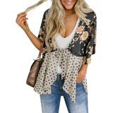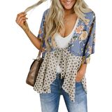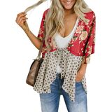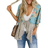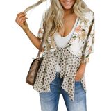 Saodimallsu المرأة التعادل الجبهة كيمونو بالأزرار الأزهار خفيفة الوزن كشكش 3/4 كم بوهو Flowy غطاء الشاطئ in Kuwait
