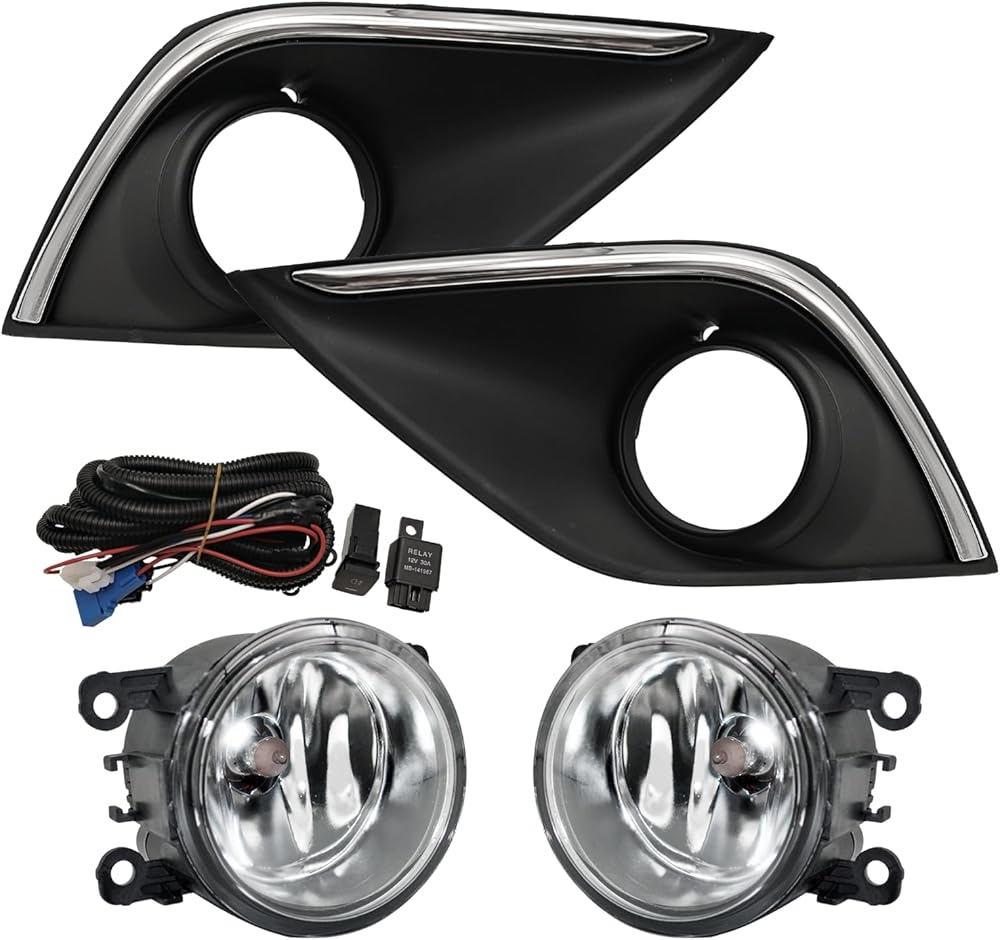 The package comes with 1 pair of left and right side fog lights and fog light covers, switch and harness