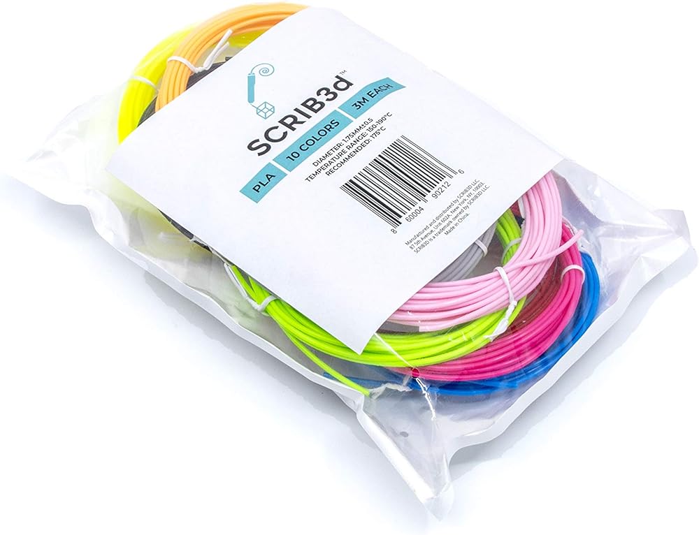 • Comprehensive 3D Drawing Bundle: Includes SCRIB3D Advanced 3D Printing Pen, 20 feet of filament, stencil book, project guide, and an additional 200 feet of PLA filament in 10 vibrant colors.