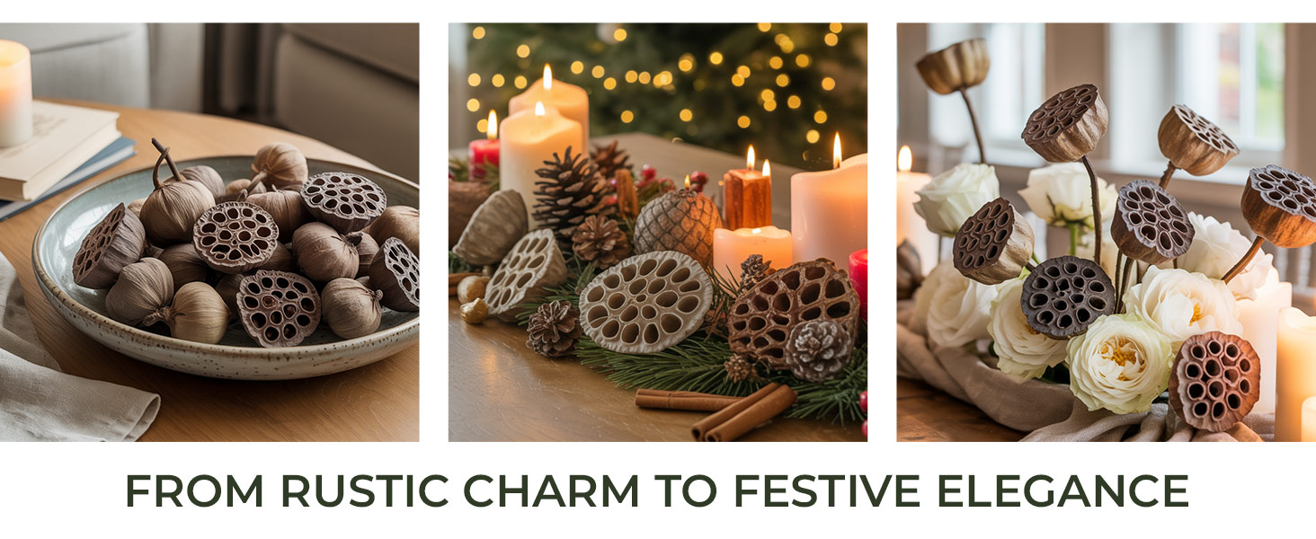 ديكور الزفاف الريفي المفضل: أضف سحرًا ريفيًا أنيقًا إلى حفل الزفاف الخاص بك مع بذور اللوتس. مثالية لحشو الباقة، أو قطع الطاولة المركزية، أو ترتيبات الممر، فهي تعطي لونًا ترابيًا طبيعيًا للمناسبات ذات الطابع البوهيمي أو الخارجية.