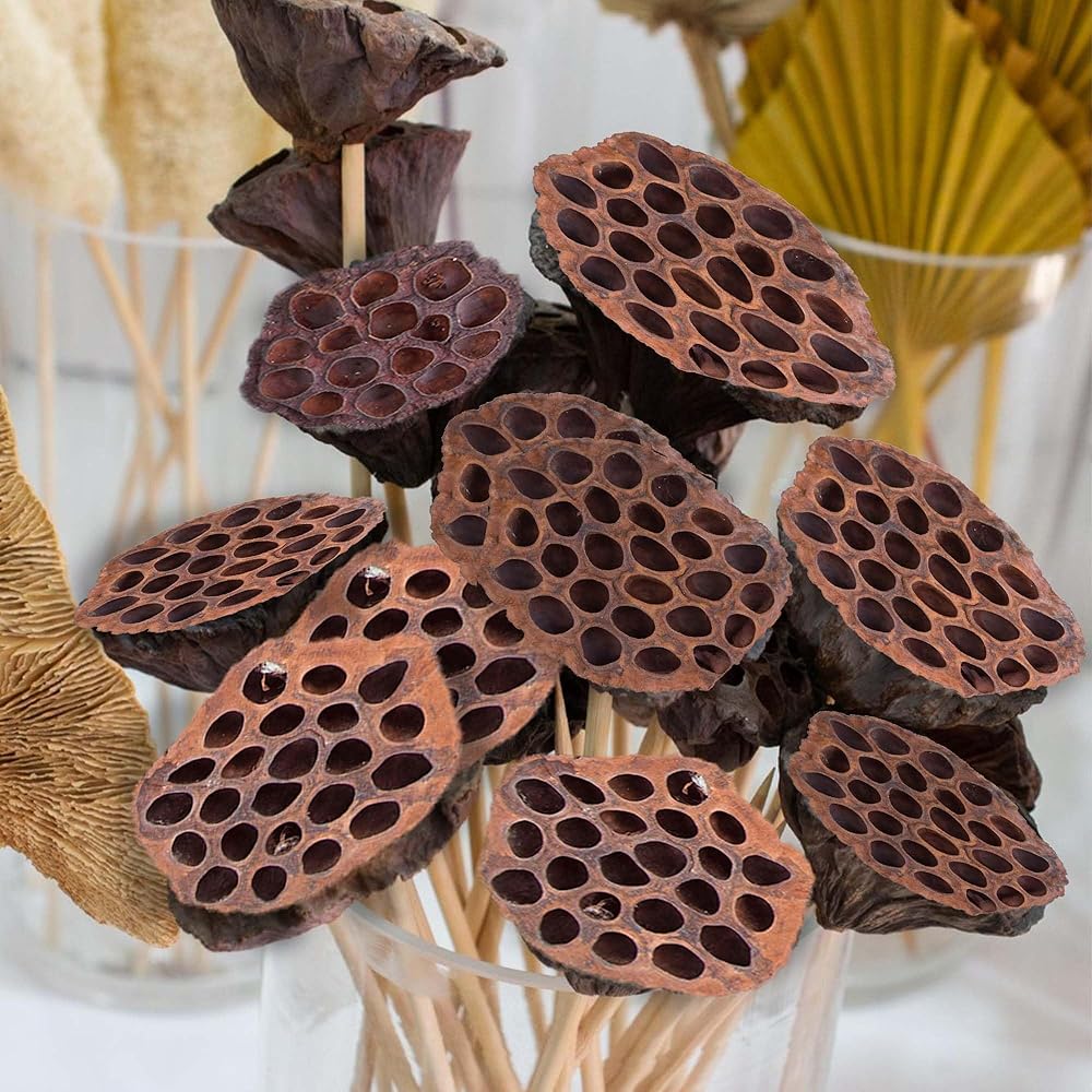حشوات المزهرية المثالية لتصميم المنزل: استخدم رؤوس اللوتس في حشوات المزهرية الطويلة المجففة لإنشاء ترتيبات مذهلة وبسيطة. يضيف شكلها النحتي اهتمامًا بصريًا، مما يجعلها نقطة محورية رائعة لغرف المعيشة والمداخل وأماكن تناول الطعام.