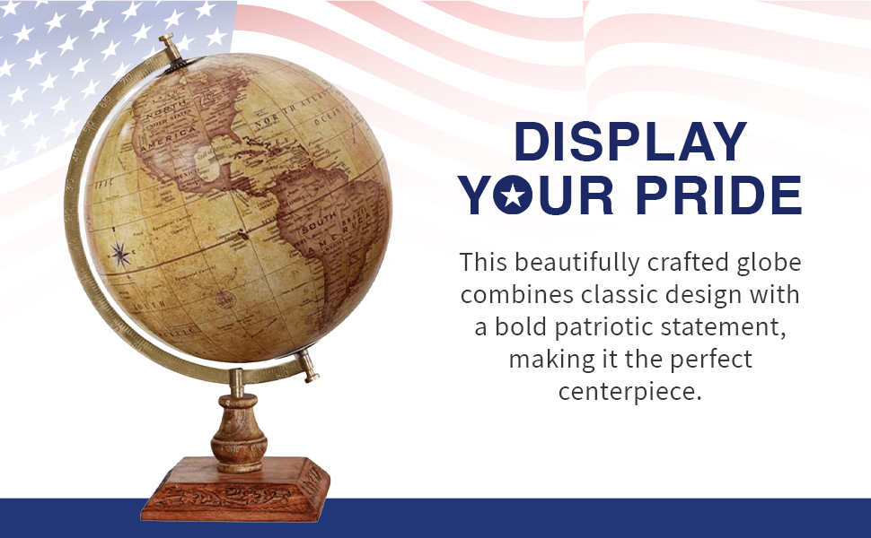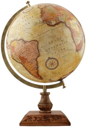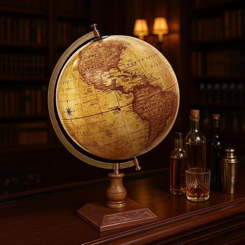 World Globe - طراز كلاسيكي - قاعدة خشبية متينة - خليج أمريكا وجبل ماكينلي - كرة أرضية مقاس 30.48 سم