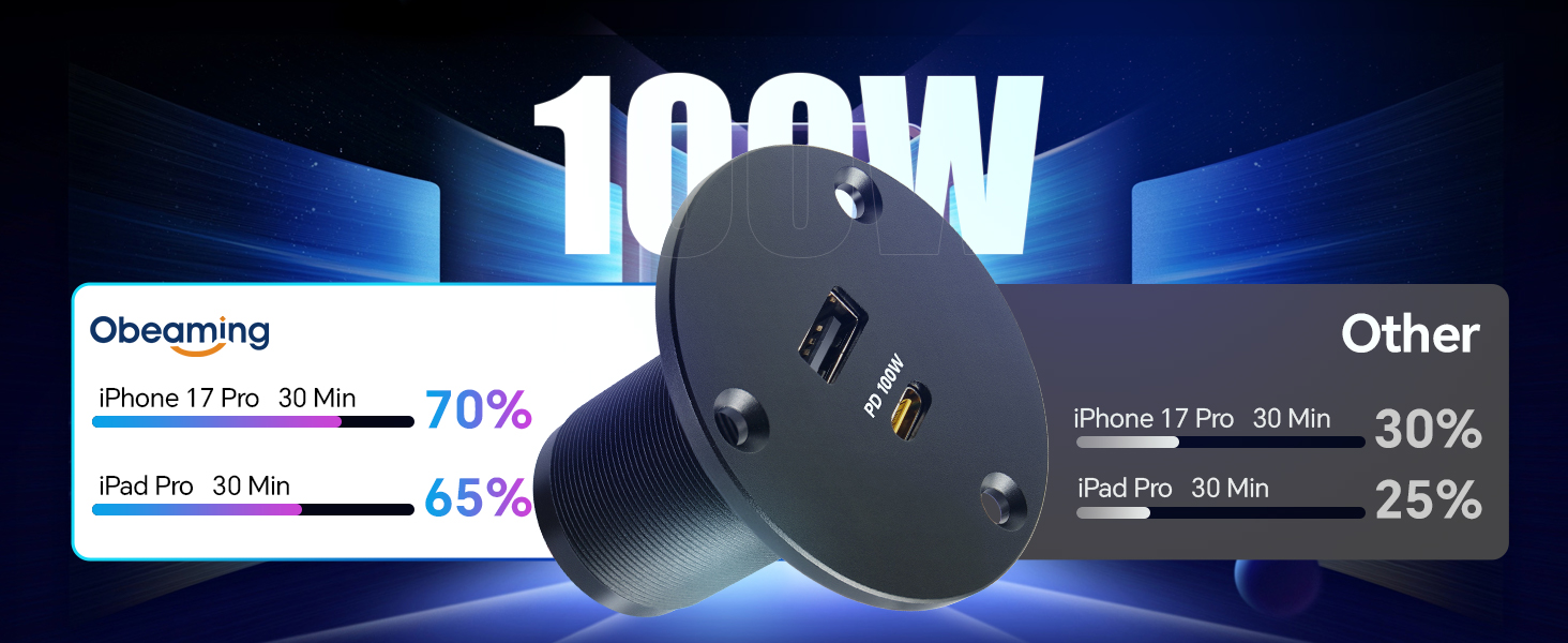 شحن سريع للغاية 100 وات PD3.0: استمتع بسرعات شحن أسرع ثلاث مرات من المنافذ القياسية. يشحن منفذ USB PD3.0 RV بقدرة 100 واط معظم أجهزة الكمبيوتر المحمولة بكفاءة حتى 50% في 30 دقيقة فقط، كل ذلك بدون محولات ضخمة، مما يجعله مثاليًا لـ Starlink Mini والطائرات بدون طيار وأجهزة الكمبيوتر المحمولة الاحترافية وغيرها من الأجهزة عالية الطاقة