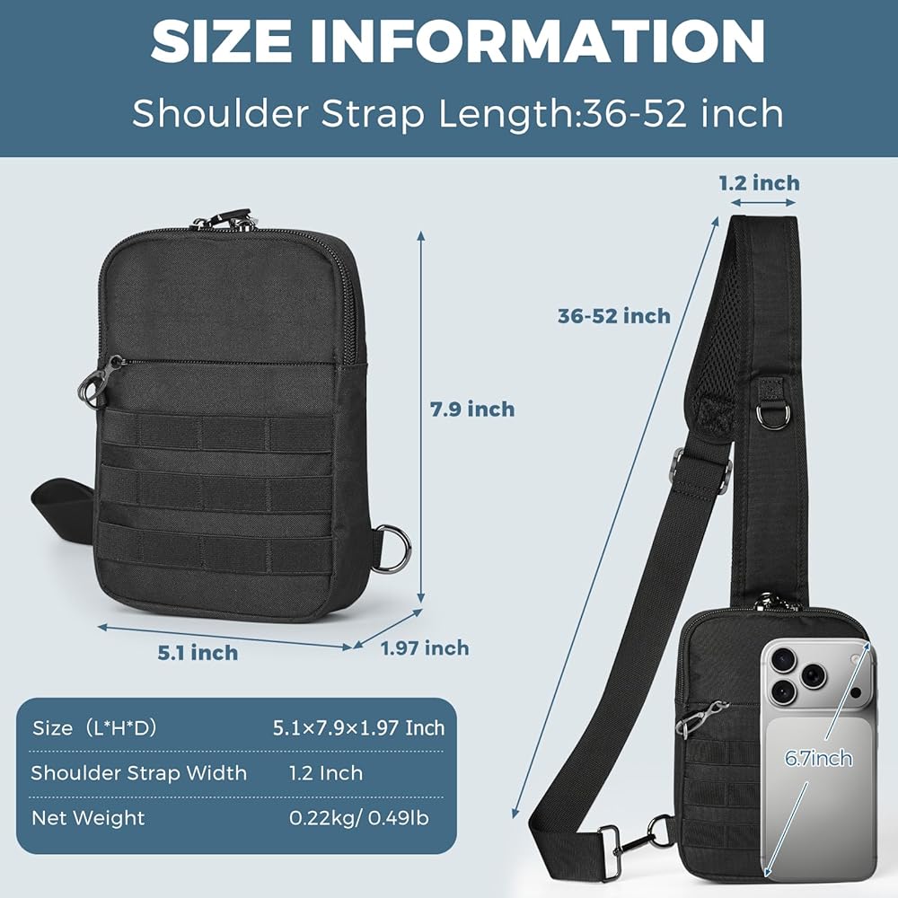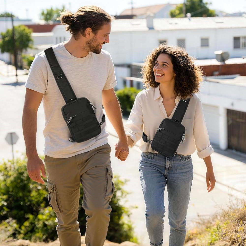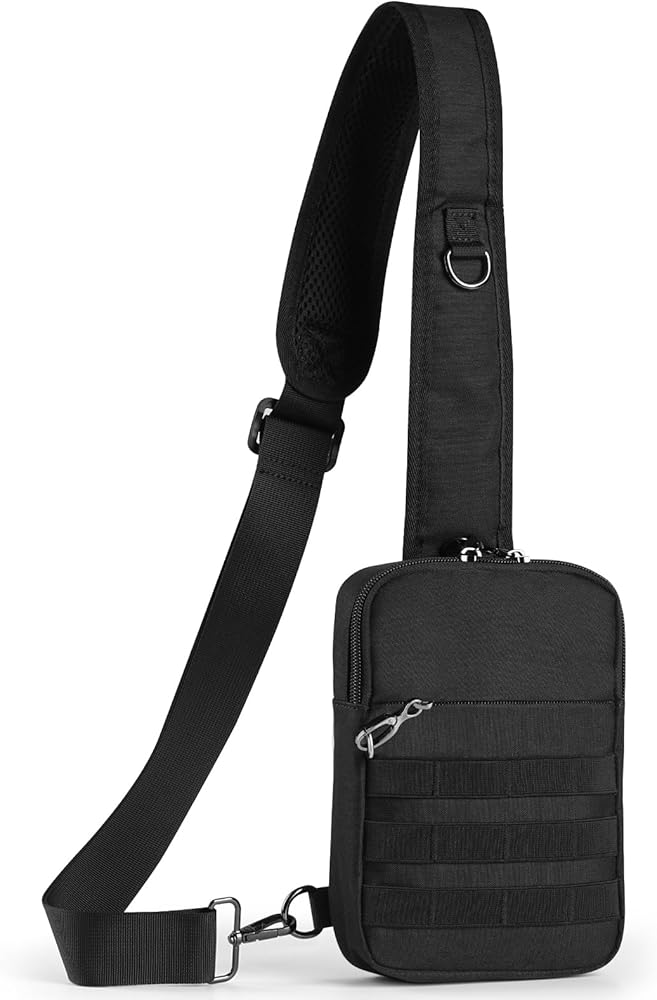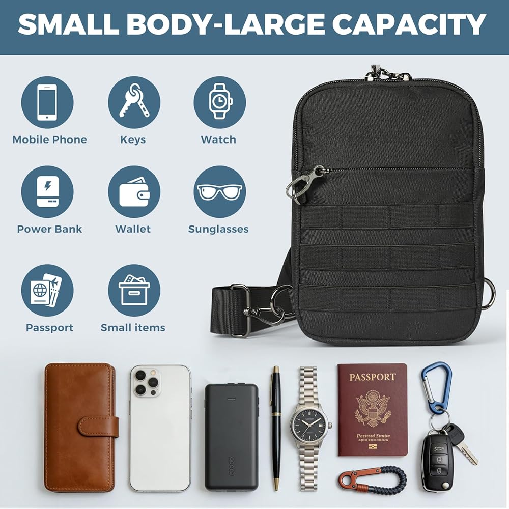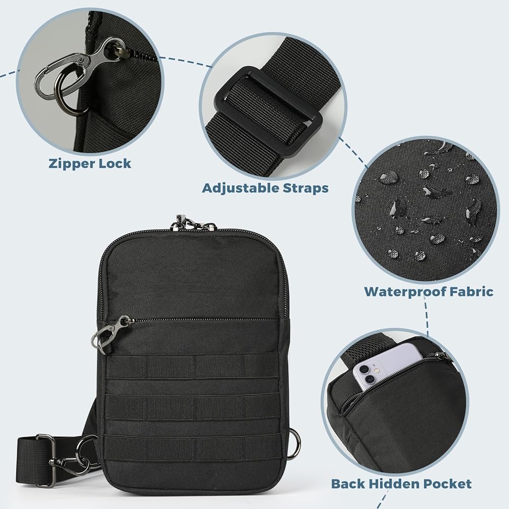 حقيبة كتف تكتيكية صغيرة مضادة للسرقة من برودريم، حقيبة صدر EDC مع نظام مولي وجيب أمان مخفي، حقيبة كتف كروس مقاومة للماء للسفر والتنزه في صالة الألعاب الرياضية (أسود)