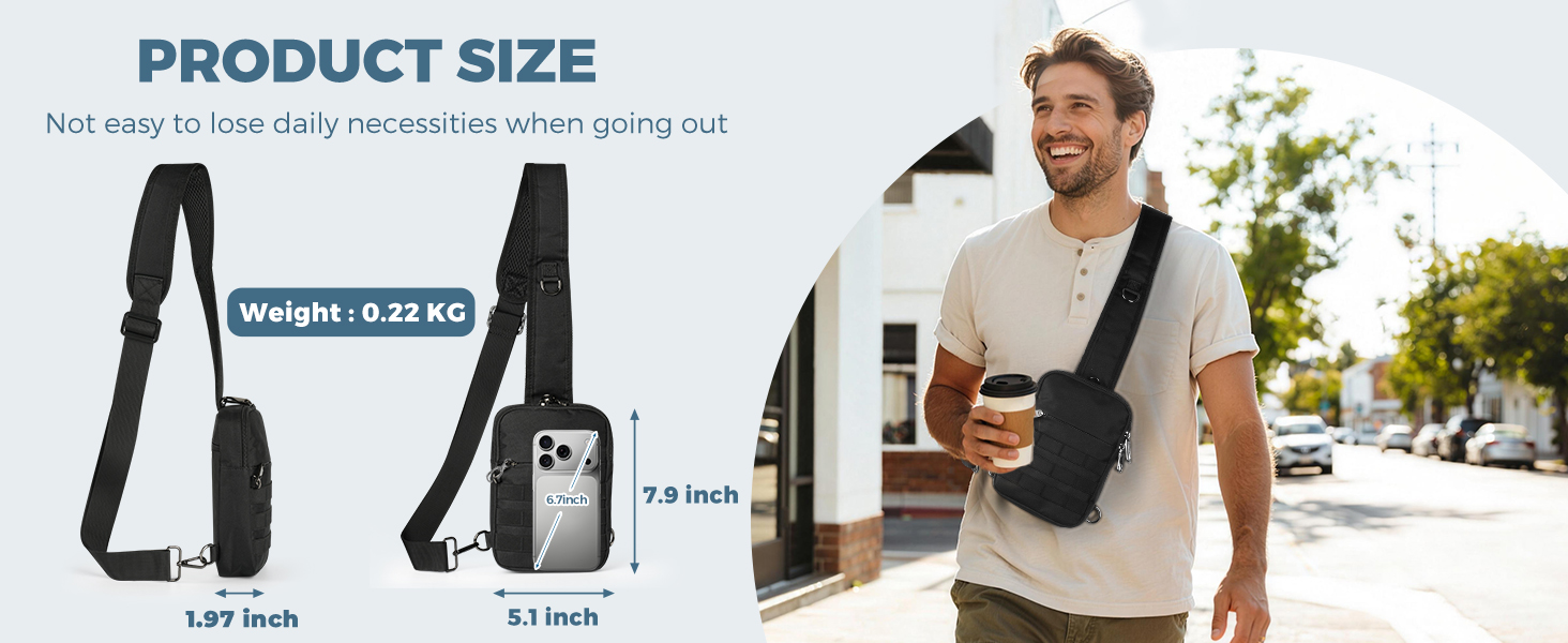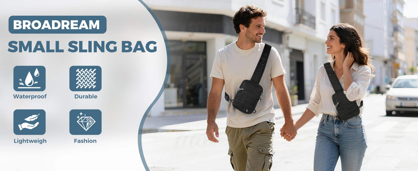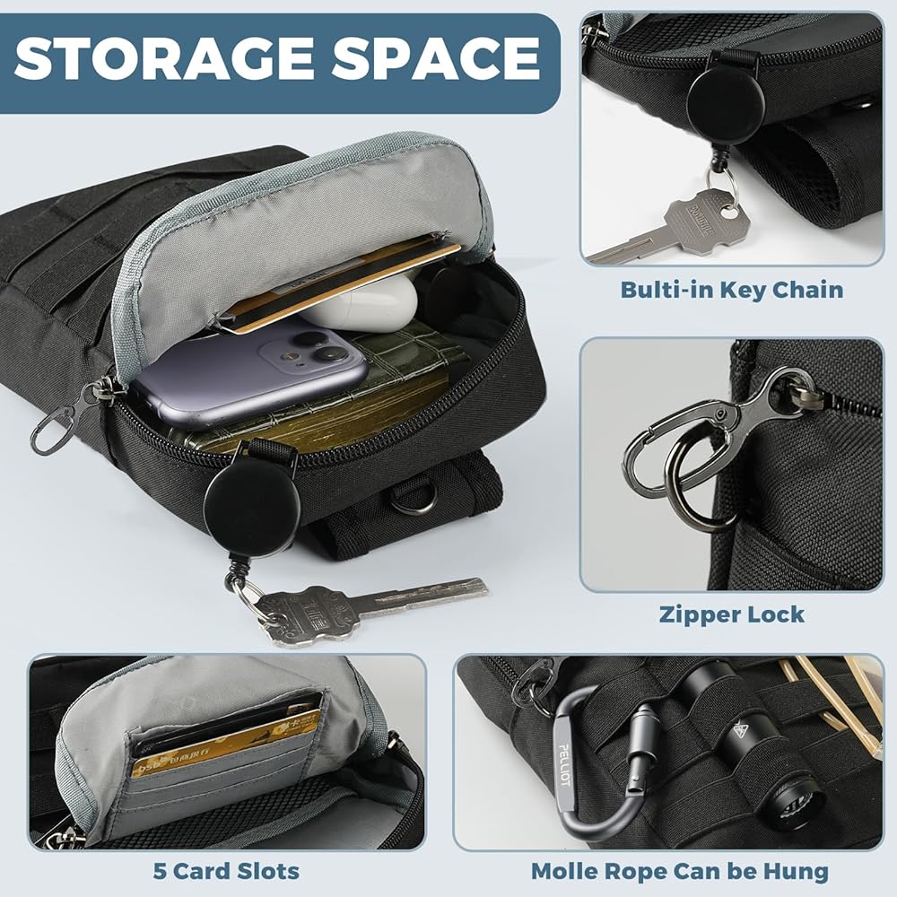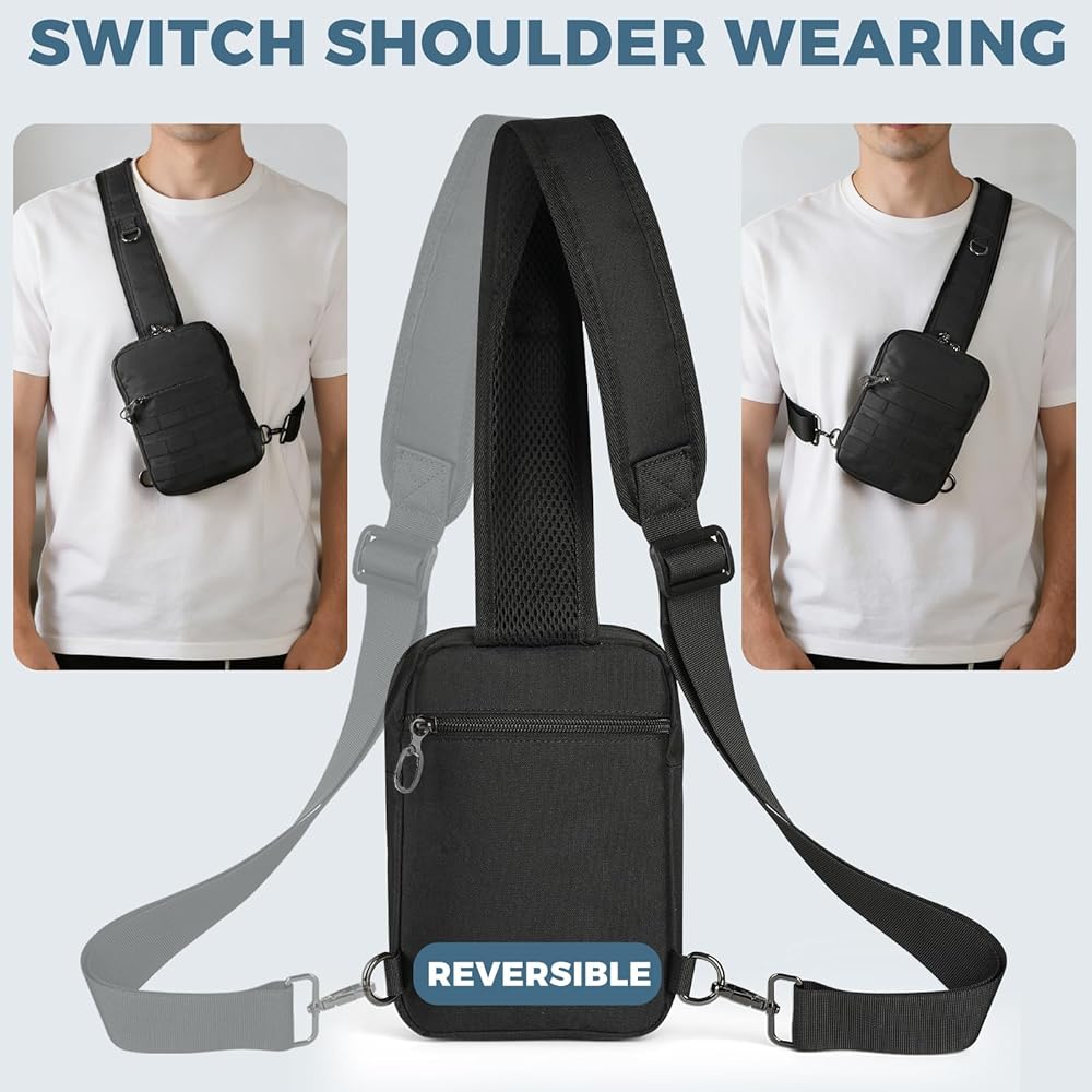 حقيبة كتف تكتيكية صغيرة مضادة للسرقة من برودريم، حقيبة صدر EDC مع نظام مولي وجيب أمان مخفي، حقيبة كتف كروس مقاومة للماء للسفر والتنزه في صالة الألعاب الرياضية (أسود)