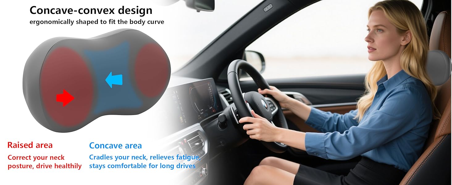 تخفيف آلام الرقبة وتصحيح الوضعية - الشكل المنحني المصمم علميًا يعزز المحاذاة الصحيحة للعمود الفقري وانحناء عنق الرحم الطبيعي، مما يساعد على تخفيف آلام الرقبة المزمنة، وتصلب الكتف، وتوتر العضلات، والصداع، والانزعاج الناجم عن ضعف وضعية القيادة. مثالي للعاملين في المكاتب، والسائقين المحترفين، والركاب المسنين، وأي شخص يعاني من الأقراص المنفتقة أو التهاب المفاصل.