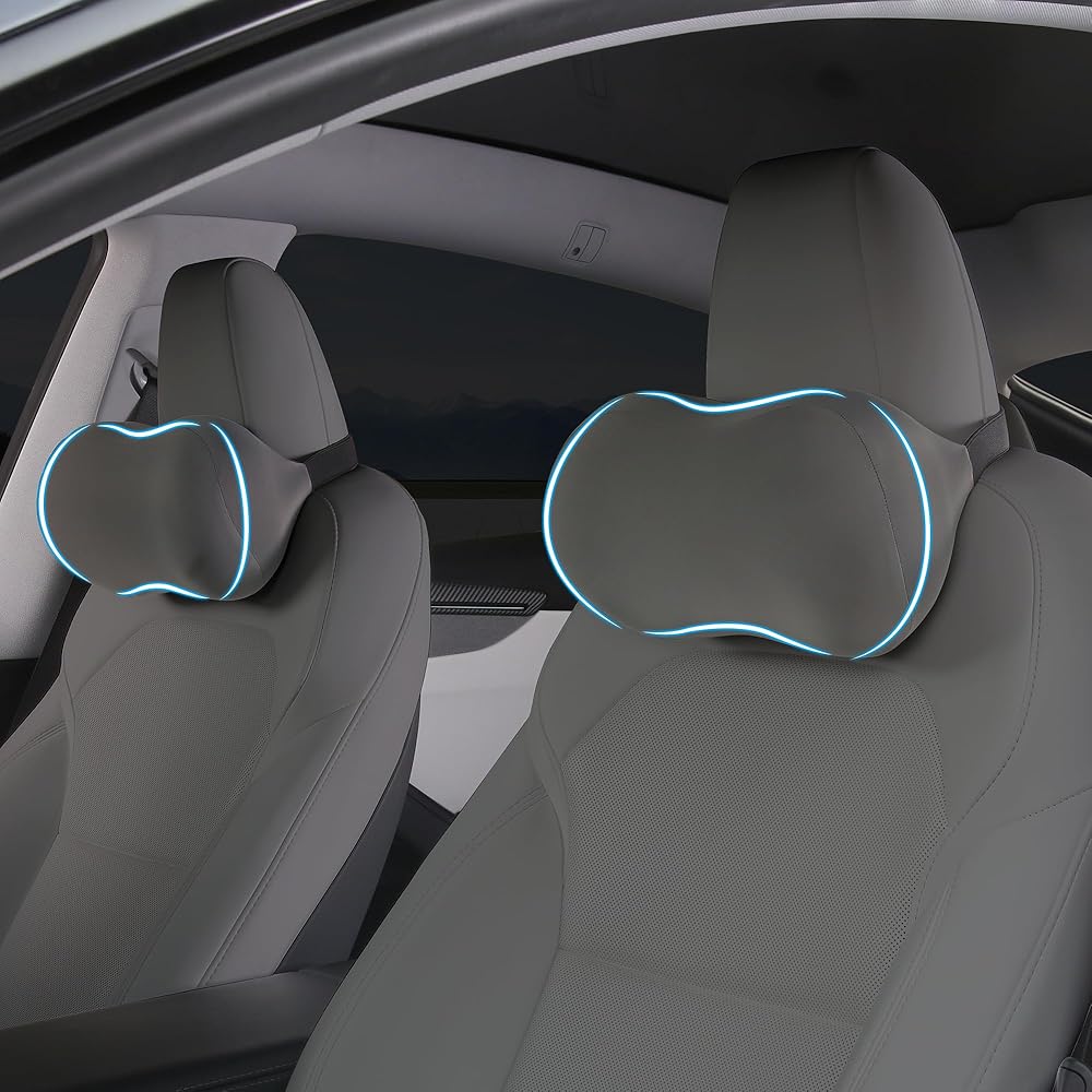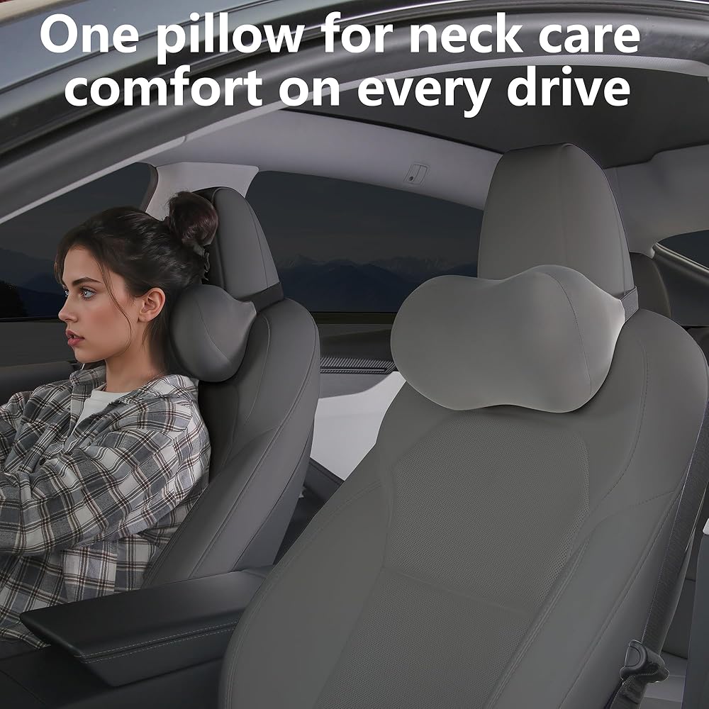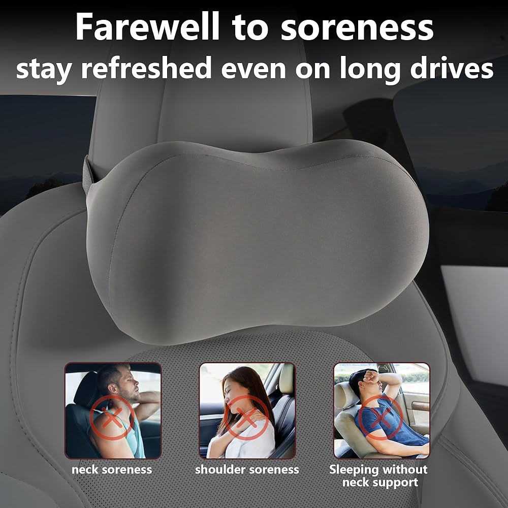 وسادة مسند رأس السيارة لدعم الرقبة من إسفنج الذاكرة وسادة رقبة السيارة ملائمة عالمية لراحة الرأس وسادة سفر وسادة سيارة لتخفيف الألم أثناء القيادة رمادي قطعتان