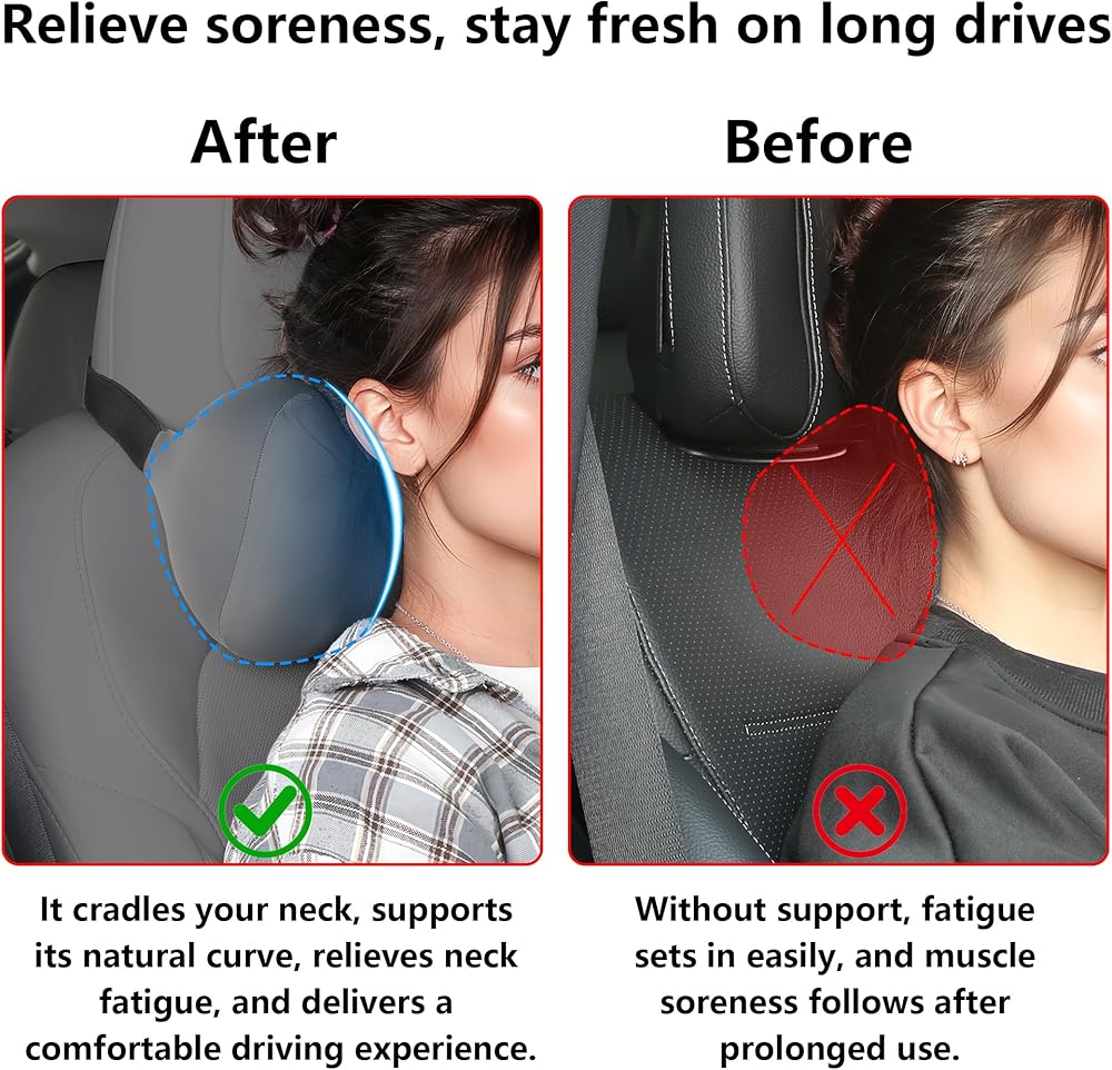 وسادة رقبة سيارة مريحة من الإسفنج الذكي لراحة فائقة - تتميز بإسفنج مرن لزج عالي الكثافة يحيط بدقة برقبتك والعمود الفقري العنقي، مما يوفر دعمًا شخصيًا لتقويم العظام وتخفيف فعال للألم أثناء الرحلات البرية الطويلة والتنقلات اليومية والقيادة على الطرق السريعة. تعمل تقنية الارتداد البطيء على امتصاص اهتزازات الطريق وتقليل نقاط الضغط لتحقيق أقصى درجات الاسترخاء.