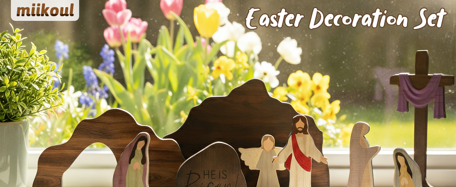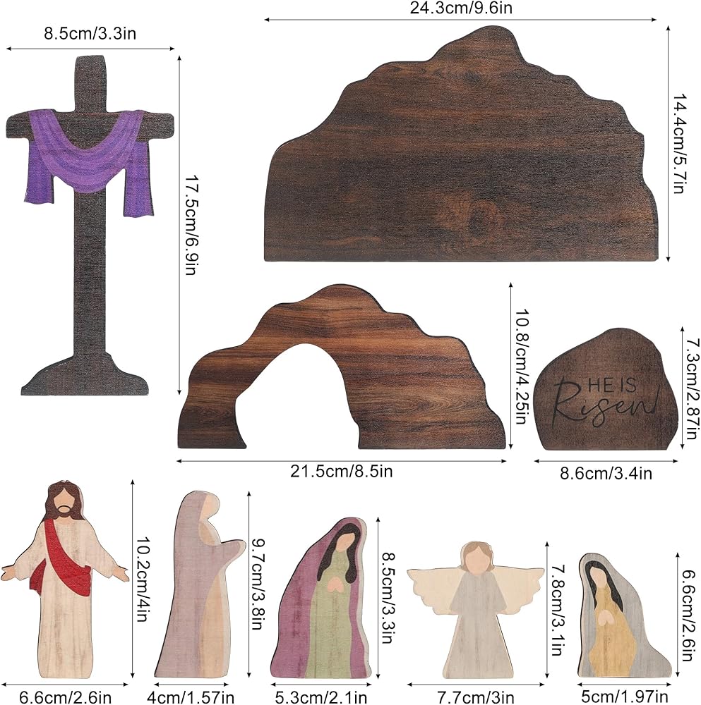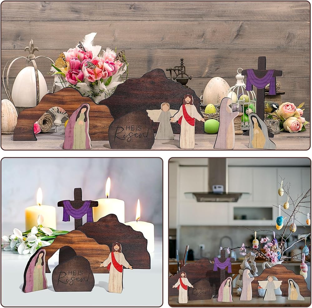 ديكور عيد الفصح: تتضمن مجموعة عيد الفصح المسيحية هذه المكونة من 9 قطع تمثيلات رمزية للجلجلة والقبر الفارغ، والمسيح المُقام، والملاك الإلهي، وثلاثة شخصيات للصلاة، وصليب مقدس، ورسالة راقية "لقد قام". إنه يخلق شهادة قوية على الإيمان بشاشتك