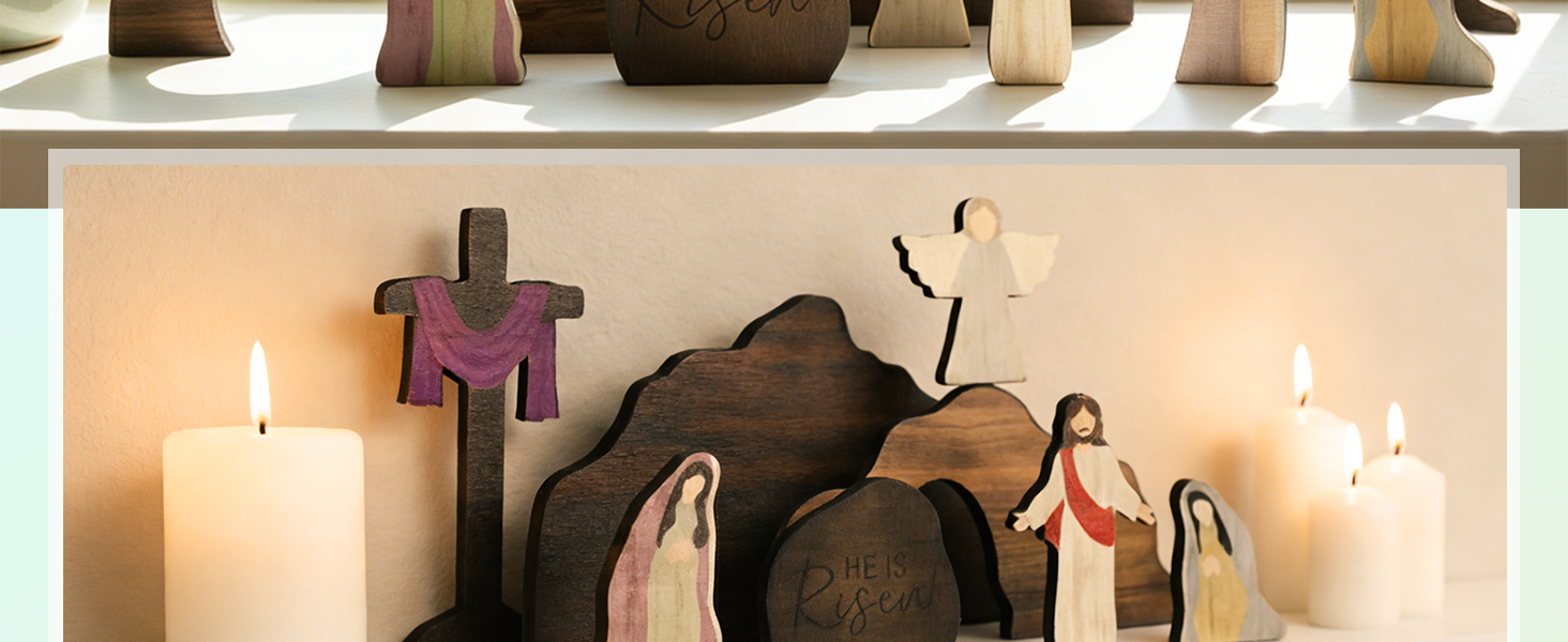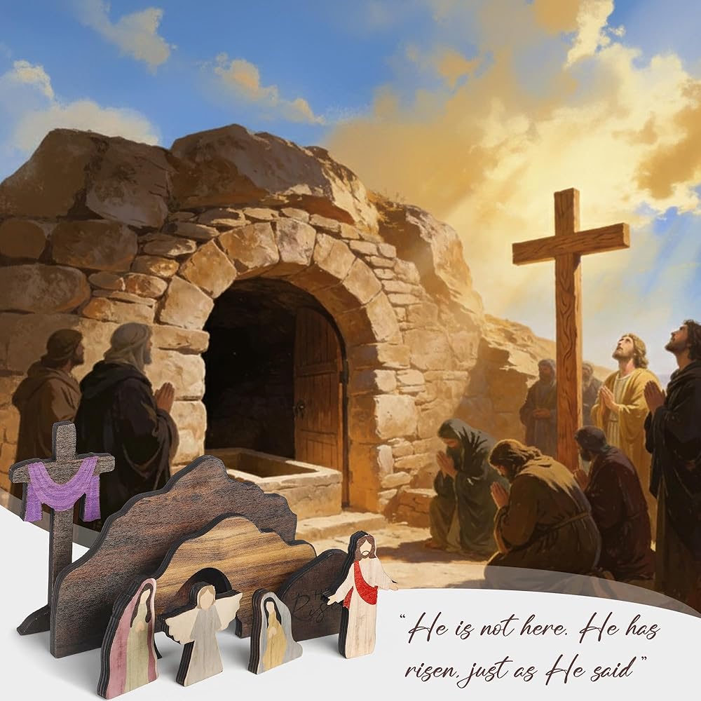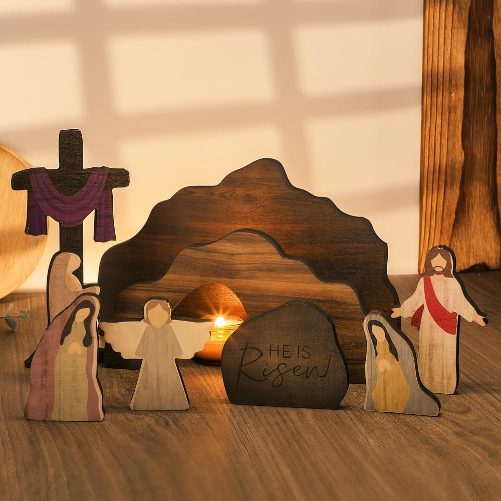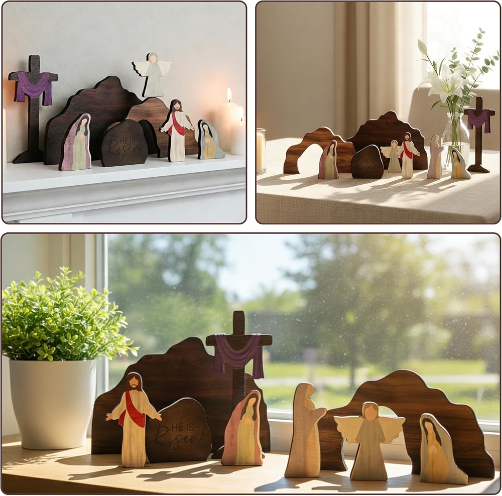 ديكور عيد الفصح: تتضمن مجموعة عيد الفصح المسيحية هذه المكونة من 9 قطع تمثيلات رمزية للجلجلة والقبر الفارغ، والمسيح المُقام، والملاك الإلهي، وثلاثة شخصيات للصلاة، وصليب مقدس، ورسالة راقية "لقد قام". إنه يخلق شهادة قوية على الإيمان بشاشتك