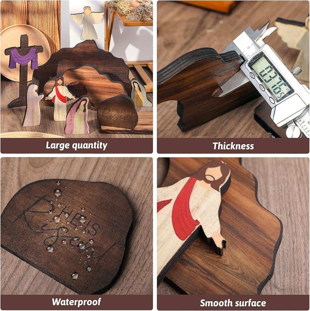 مواد فاخرة: كل تمثال في مشهد عيد الفصح الخشبي هذا مصنوع من خشب عالي الجودة ومطلي يدويًا بألوان طبيعية هادئة. من الملمس الواقعي للكهف إلى التعبير السلمي على وجه الملاك، التفاصيل الرائعة تجعل هذه المجموعة إضافة أنيقة لديكورك