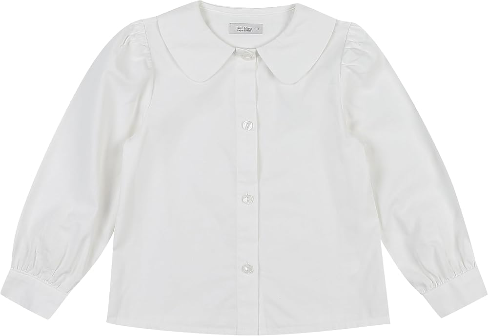 👚 CLASSIC DESIGN: This Peter Pan round collar blouse features puffed long sleeves and a button-down front closure. Perfect for school uniforms, formal occasions, or layering under knitwear.