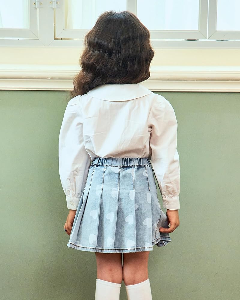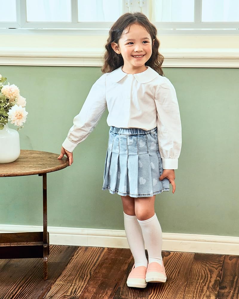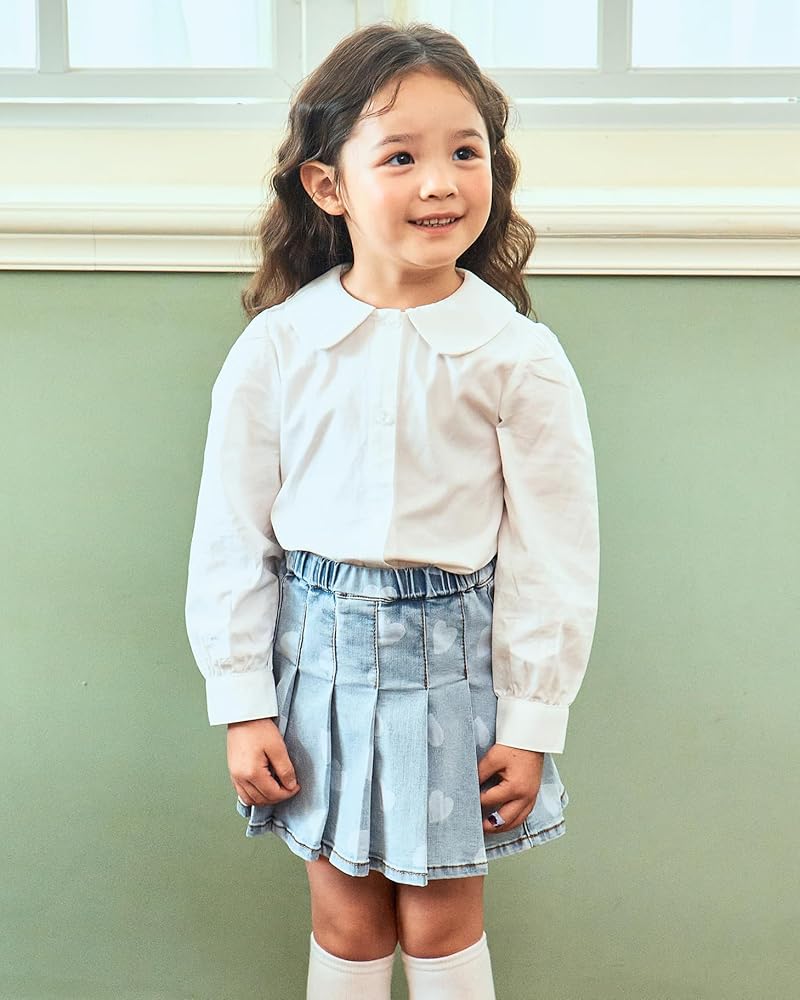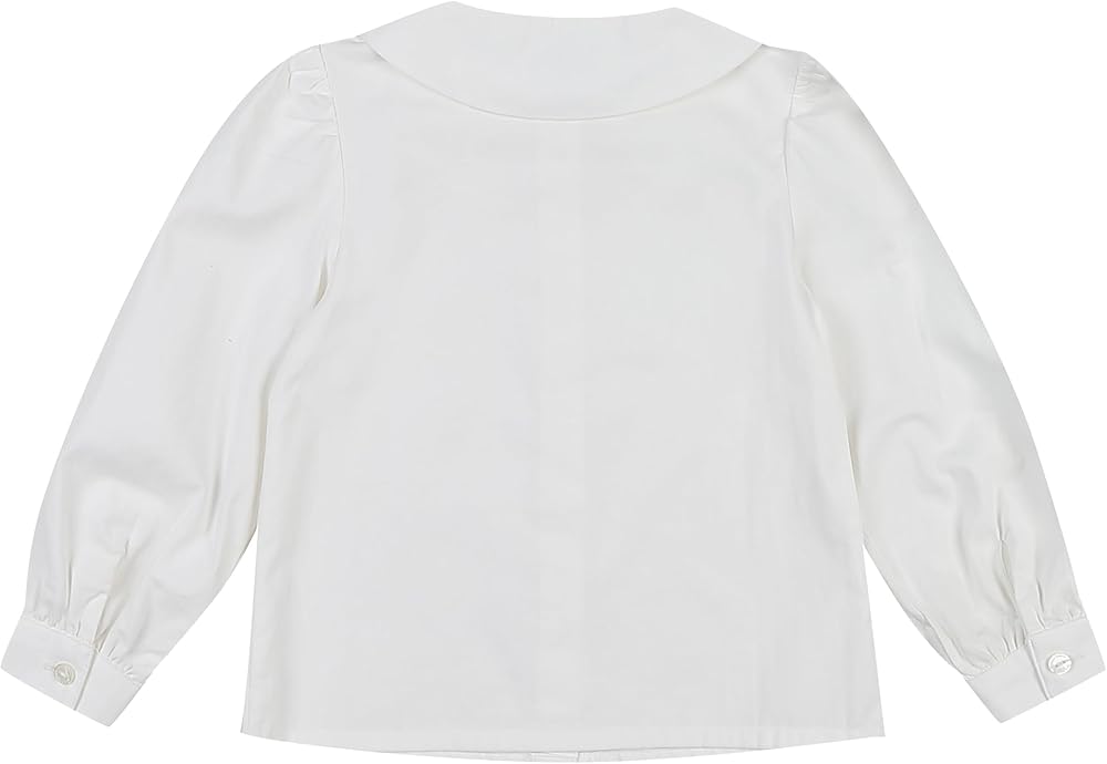Elevate your child's school wardrobe with this timeless white cotton blouse featuring a charming Peter Pan round collar. This classic button-down shirt combines style and comfort with its long sleeves and traditional design. The pure cotton fabric ensures breathability and comfort throughout the school day. The button-down front makes it easy to put on and take off, while the gathered sleeve cuffs add a delicate feminine touch. Perfect for school uniforms or dressy occasions, this versatile blouse pairs beautifully with skirts, jumpers, or pants. The durable construction stands up to regular wear while maintaining its crisp, polished appearance. The classic silhouette and high-quality craftsmanship make this TOTO HEROS blouse an essential piece for any young student's wardrobe. Available in pristine white, this shirt maintains its sophisticated look while providing the comfort and practicality needed for everyday wear.