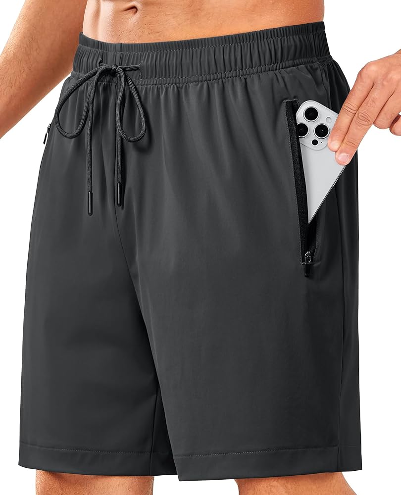 شورت رياضي للجري للرجال مع جيوب بسحاب مقاس 7 بوصة سريع الجفاف وخفيف الوزن للتمارين الرياضية وكرة السلة والتنس الكاجوال in Kuwait