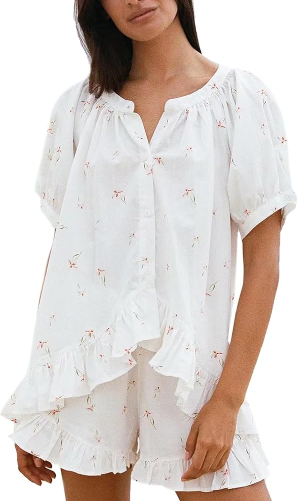PAGEPX Pajamas for Women Set Summer Floral Short Sleeve Babydoll Shirt and Shorts Set 2 Piece Lounge Set
