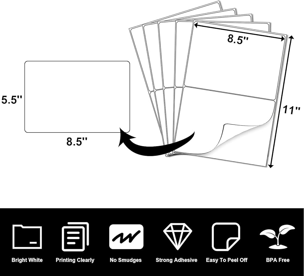 LabelMore 8.5'' x 5.5'' Half Sheet Self Adhesive Shipping Labels for Laser & Inkjet Printers