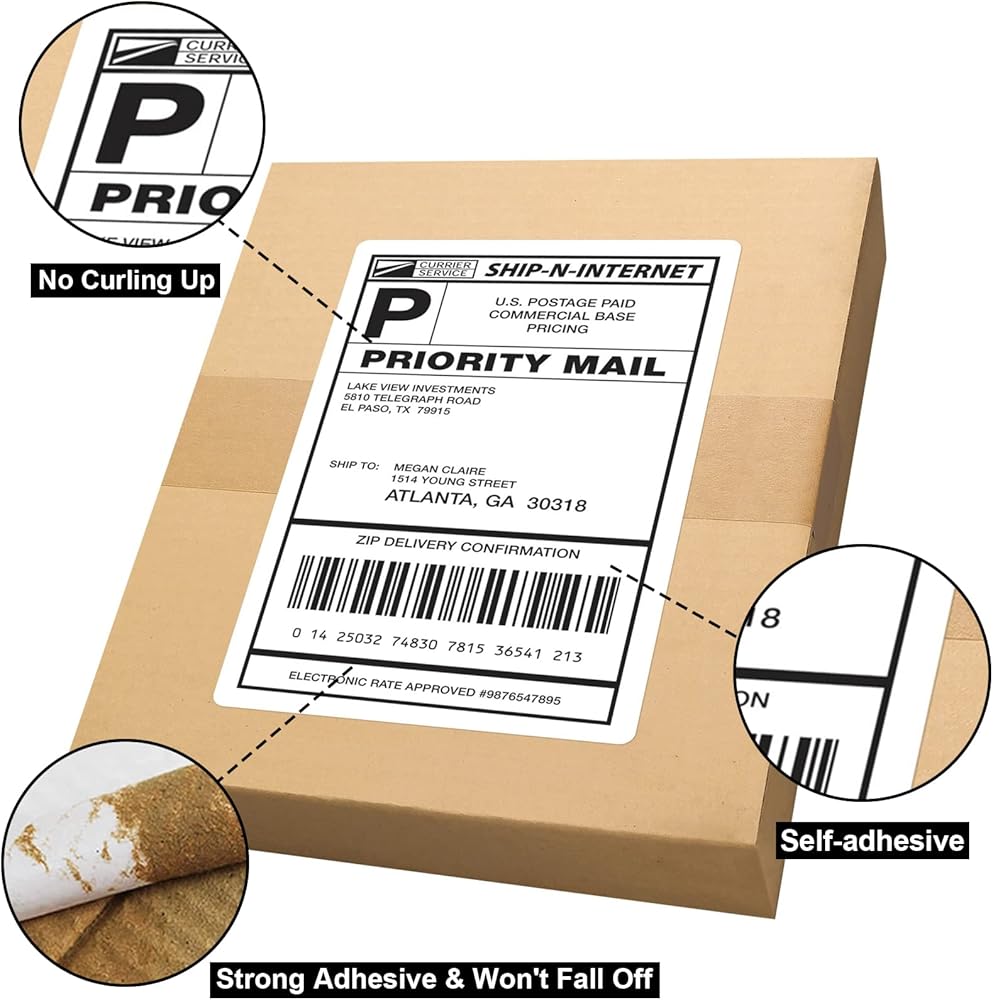 【PREMIUM QUALITY】- Bright white label paper has a matte finish, which is easy to read and suitable for scanners. Smudge-proof and waterproof feature ensure that the information on the shipping label can be displayed for a long time. Helping your package not to be lost due to lack of address.They are thick enough to cover old shipping labels and also effectively avoid curling, which is more convenient for your use!