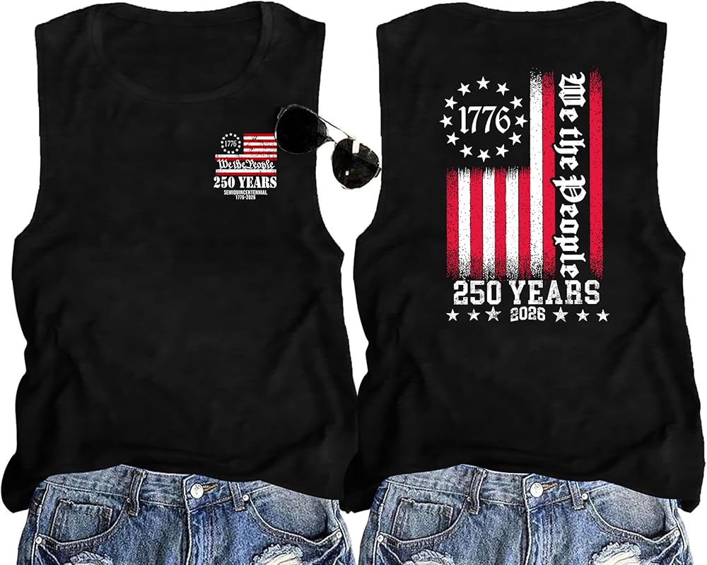 4th of July Tank Tops for Women 250th Anniversary USA Shirt American Flag Graphic Sleeveless Shirts Patriotic Tank Tops