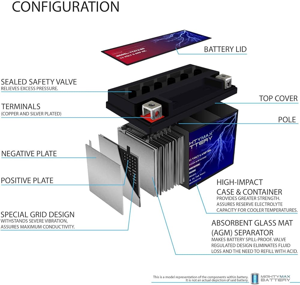 YTX7A-BS عبارة عن بطارية حمض الرصاص المختومة (SLA) بقدرة 12 فولت 6AH 105 أمبير (CCA)