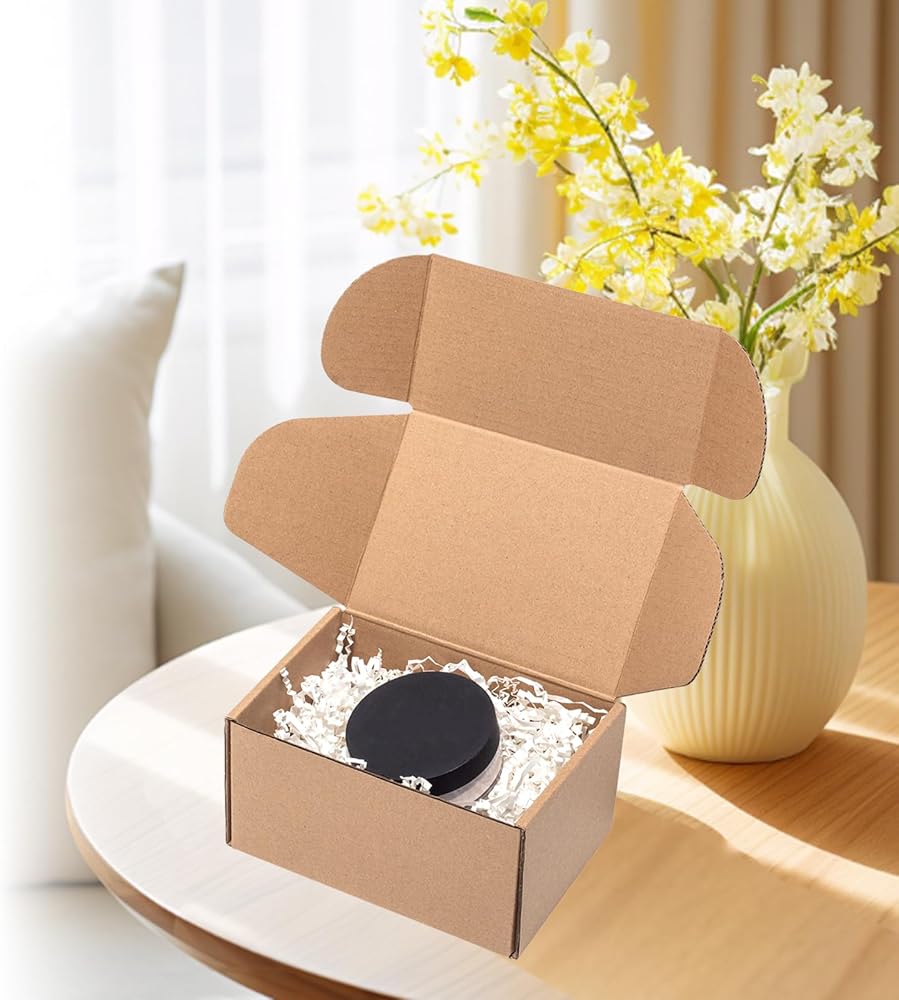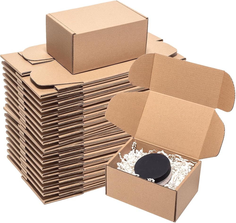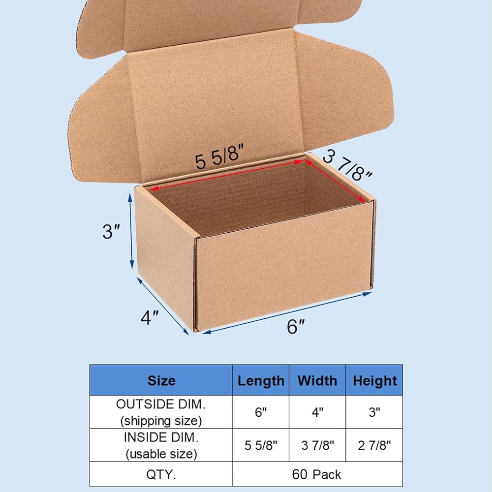 معلومات أساسية عن صناديق الشحن كرافت: الأبعاد الداخلية القابلة للاستخدام: 5 5/8 بوصة × 3 7/8 بوصة × 2 7/8 بوصة، الأبعاد الخارجية: 6 × 4 × 3 بوصة، 60 عبوة. المواد: ورق مقوى معاد تدويره، لون بني كرافت.