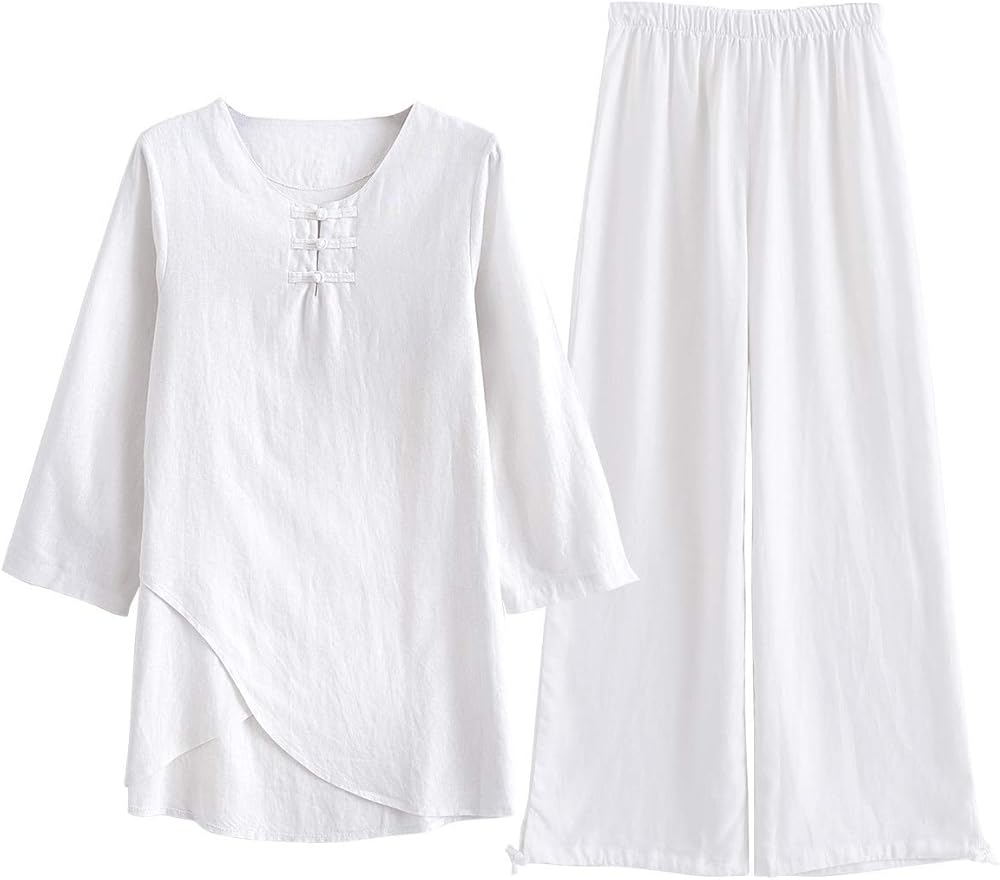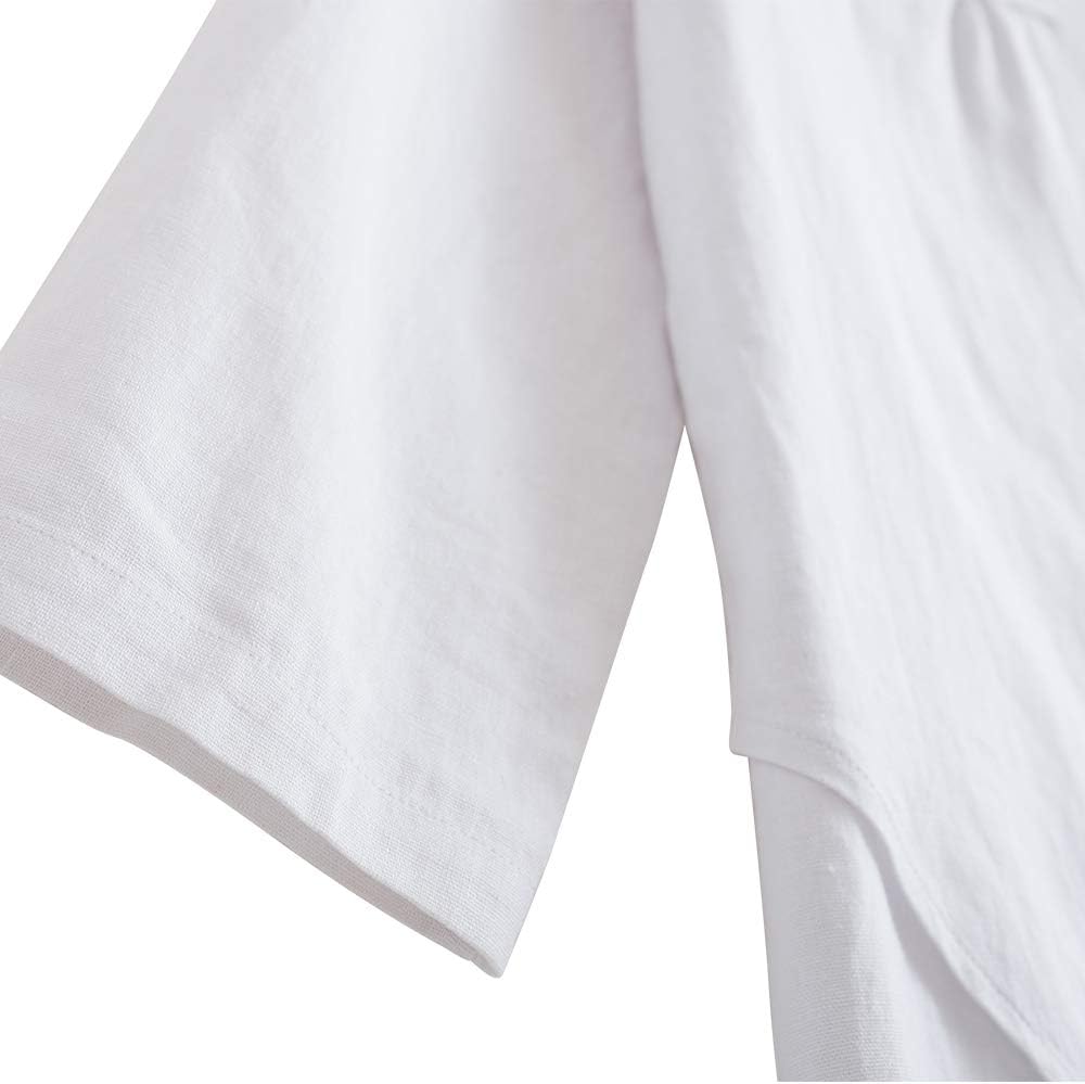خامة فاخرة: مصنوعة من مادة القطن والكتان المصنوعة يدويًا عالية الجودة؛ مسامي وممتص للرطوبة، مريح، مما يمنع العرق الزائد ويحافظ على راحة الجسم. غير مرن ولكن فضفاض.