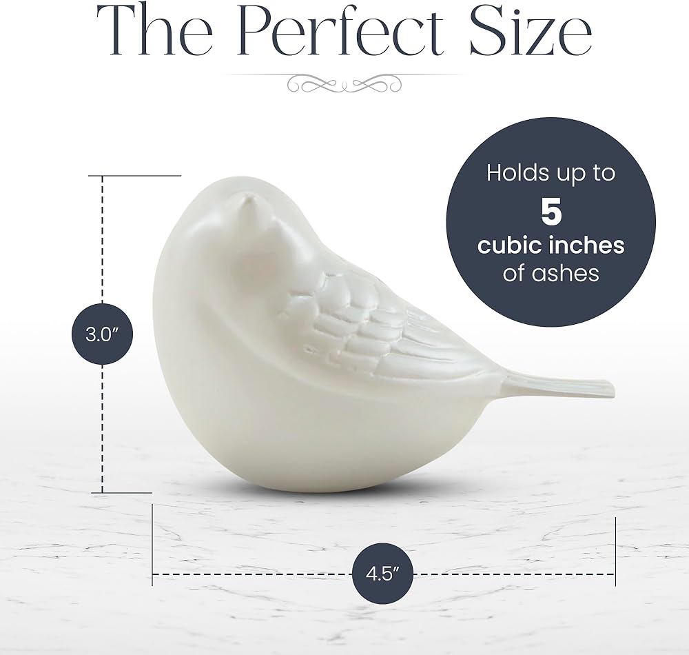 جرة صغيرة للرماد من OneWorld Memorials Songbird Bronze Memorial - جرة تذكار صغيرة جدًا - تحمل ما يصل إلى 5 بوصات مكعبة من الرماد - تذكارات حرق الجثث باللون الأبيض اللؤلؤي للرماد
