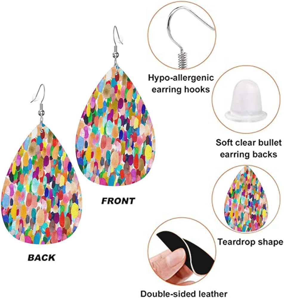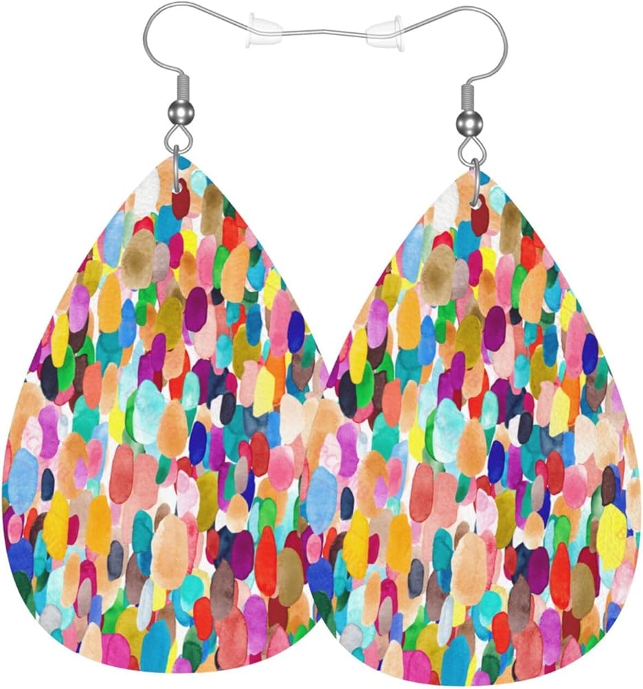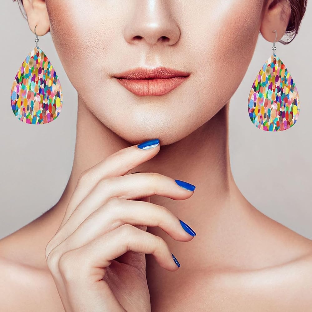 تصميم فريد: أقراط على شكل دمعة بألوان مائية مناسبة لجميع أشكال الوجه؛ تتميز بطباعة رائعة على الوجهين؛ تتناسب الألوان الزاهية بسهولة مع الملابس المفضلة للحصول على مظهر أنيق