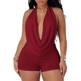 المزايا: لون موحد، بدون أكمام، رقبة على شكل رسن، قمصان قصيرة، جزء علوي بدون ظهر، خصر مرن، شورت ضيق، ملابس مثيرة للنوادي للخروج للنساء
