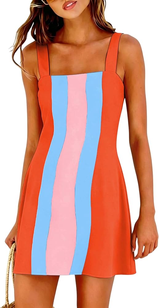التصميم: فستان قصير بألوان متعددة للسيدات يتميز بتصميم عام مرح، وأشرطة كتف قابلة للتعديل، وكتلة ألوان جريئة، وطول قصير غير رسمي يخلق إحساسًا عصريًا وممتعًا لعام 2026. حل من قطعة واحدة أكثر أناقة من التغطية الأساسية