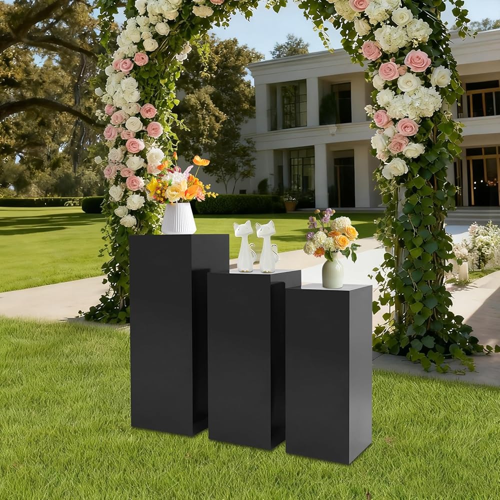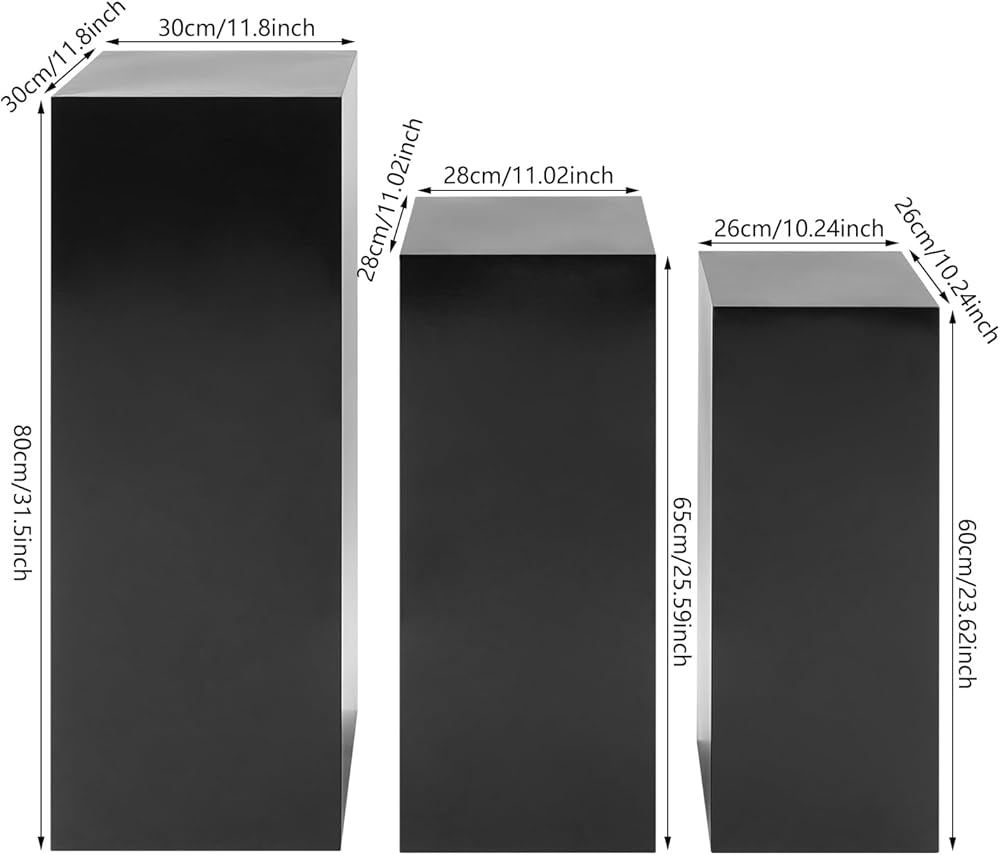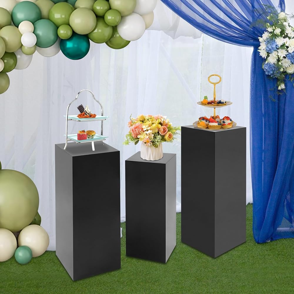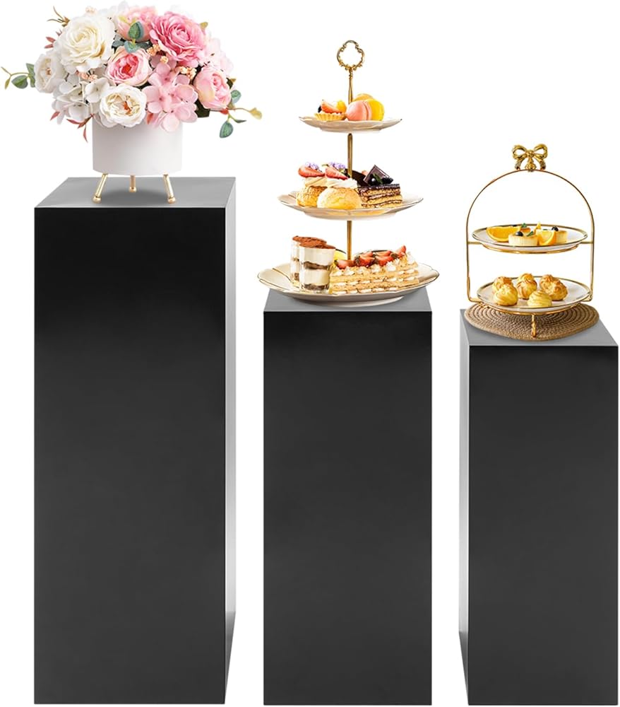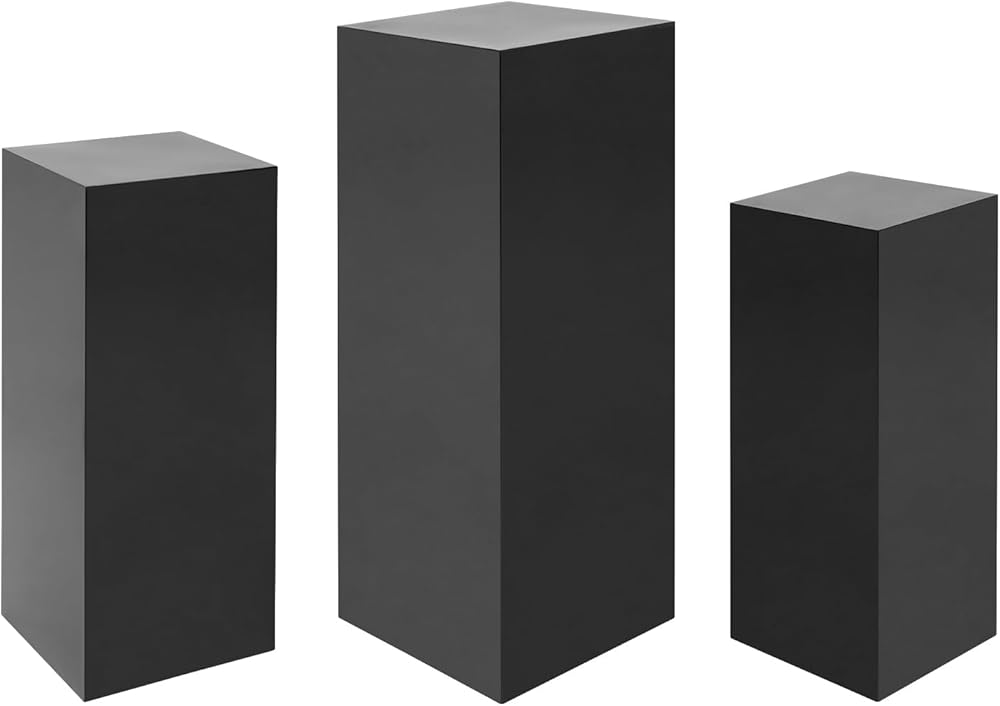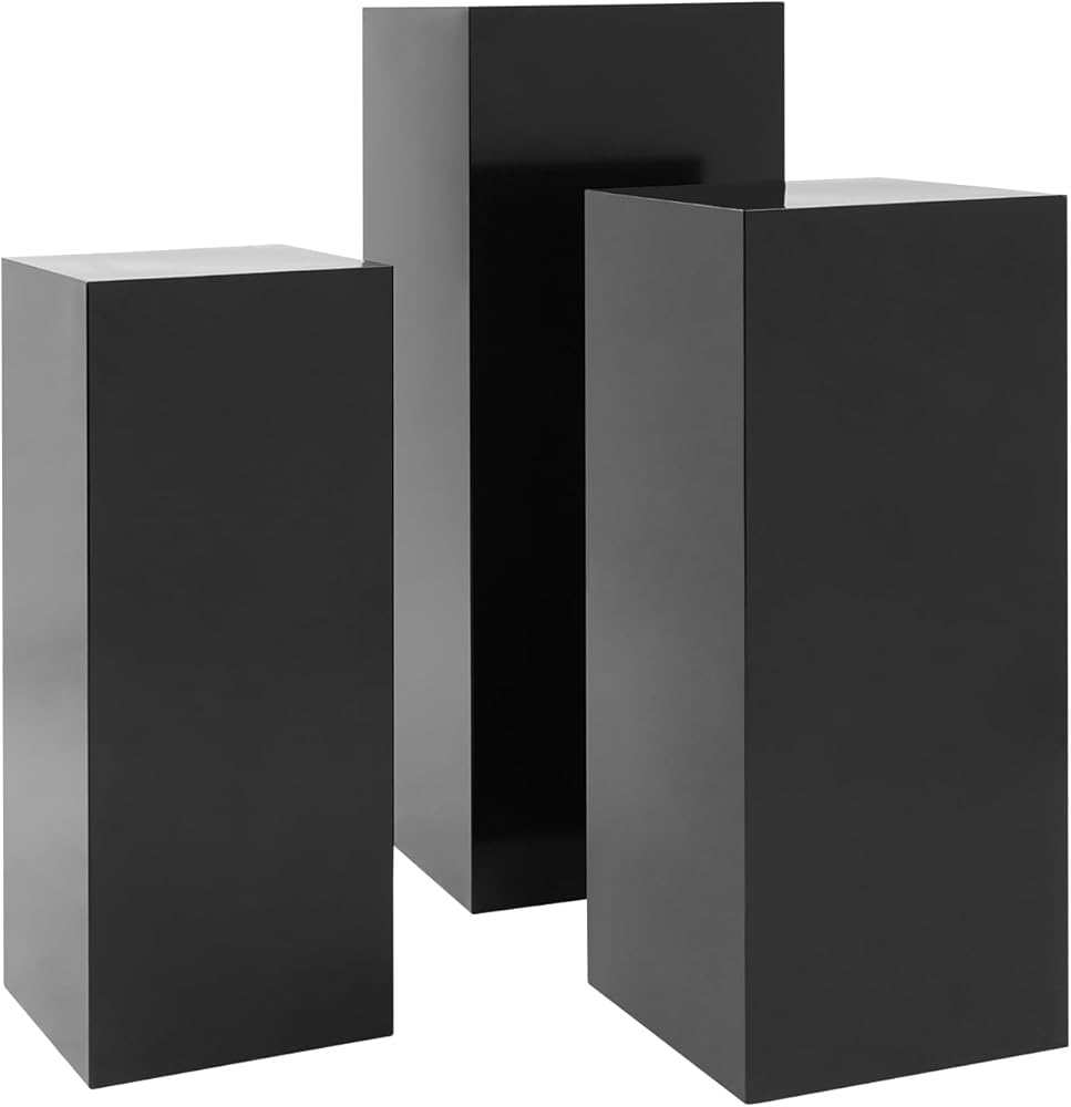 3-PIECE SET WITH VARYING HEIGHTS: Includes three freestanding pedestals in different sizes - 31.5 inches, 25.59 inches, and 23.62 inches tall - creating an elegant layered display effect for visual appeal