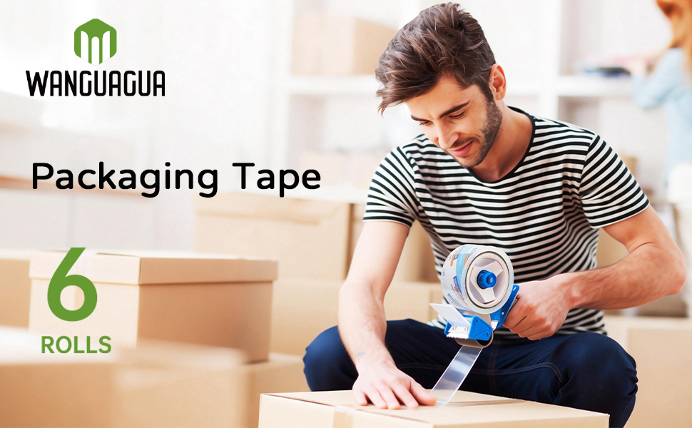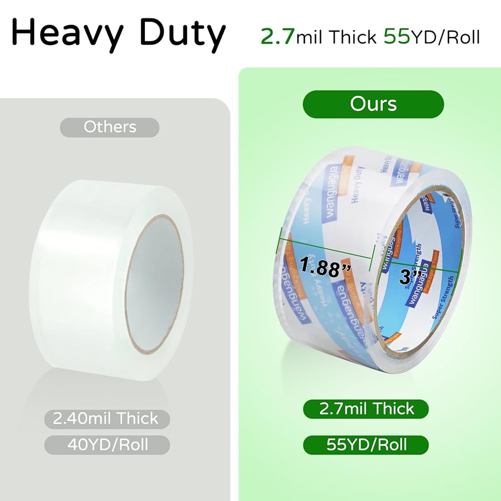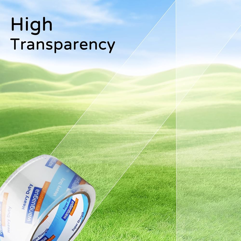wanguagua 330 ياردة إجماليًا، 1.88 بوصة × 55 ياردة 6 عبوات، شريط تعبئة شديد الوضوح وشديد التحمل، ختم لاصق قوي