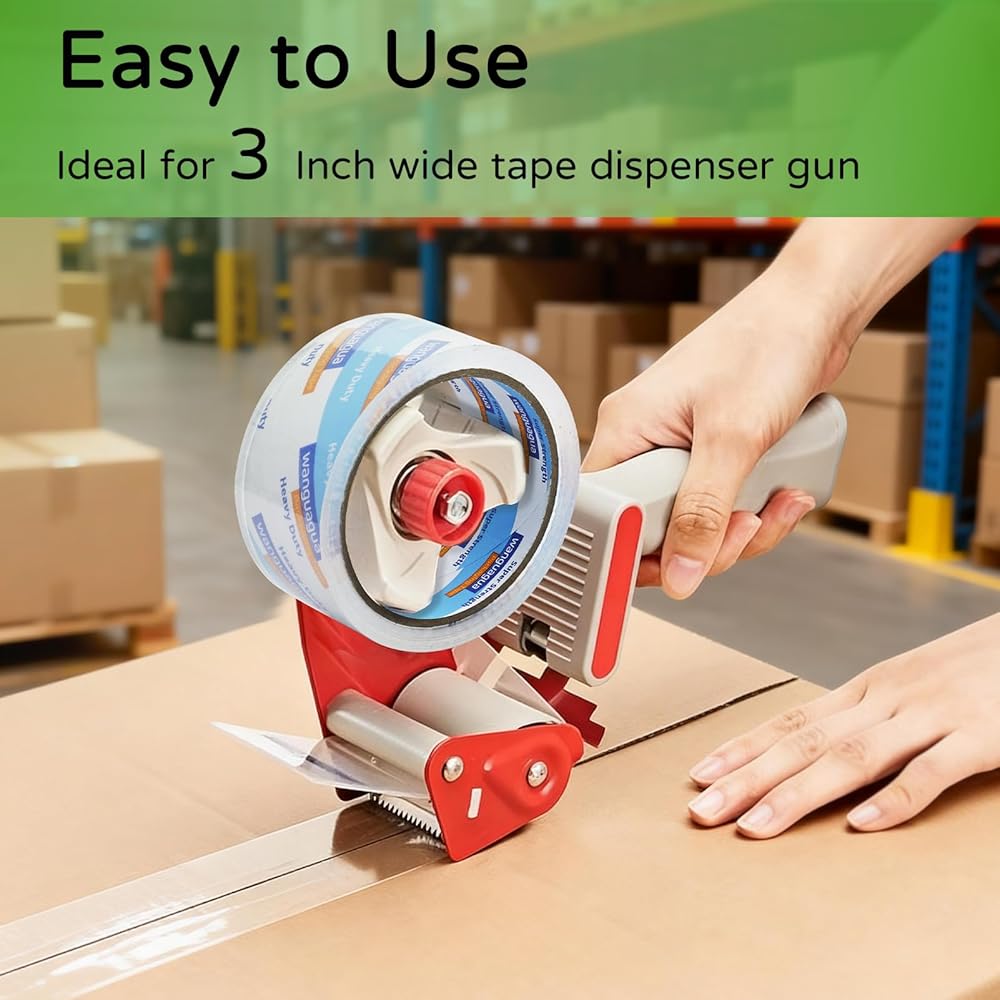 - الأبعاد: يبلغ مقاس كل لفة 1.88 سم عرضًا × 55 ياردة طولاً، مما يوفر تغطية كبيرة للصناديق والعبوات.