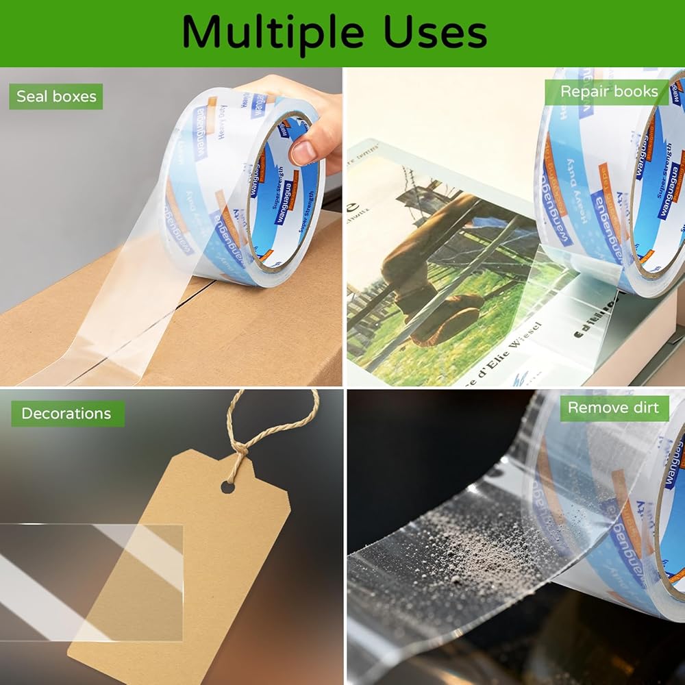 - محتويات العبوة: مجموعة من 6 لفات من شريط التغليف الشفاف عالي التحمل، مما يوفر إجمالي 330 ياردة من الشريط لجميع احتياجات التغليف الخاصة بك