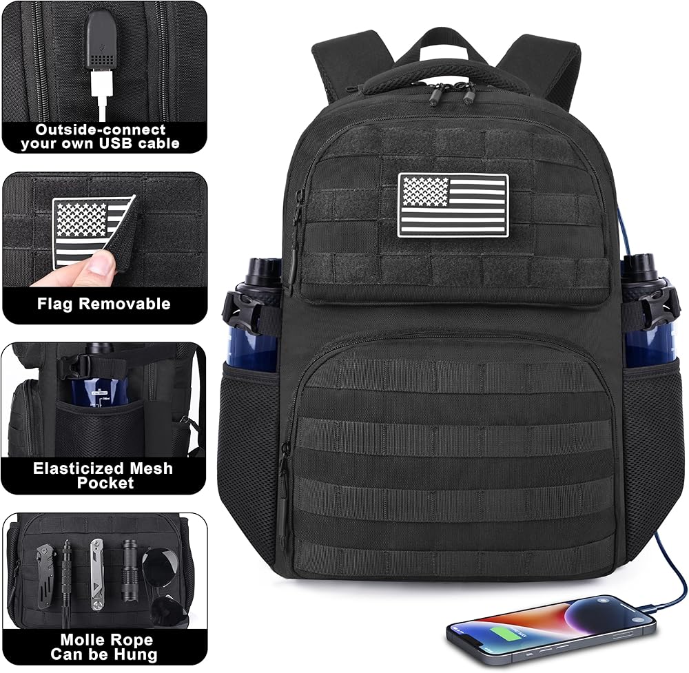 حقيبة ظهر للكمبيوتر المحمول MOZETO، مقاس 17 بوصة مستوحاة من التكتيكات، حقائب ظهر كبيرة للكمبيوتر المحمول للرجال مع منفذ شاحن USB 18 × 14 × 8 معتمدة من الطيران حقيبة سفر شخصية وحقيبة كمبيوتر